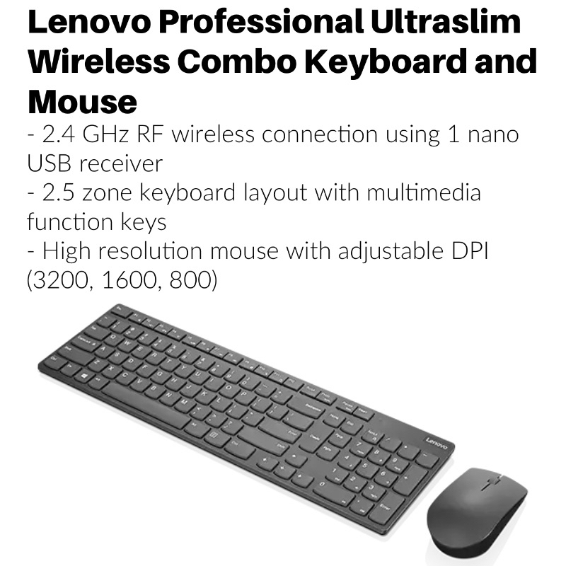 Lenovo Professional Ultra Slim Wireless Combo Keyboard and Mouse Lenovo Keyboard Lenovo Wireless Keyboard 4X30T25785
