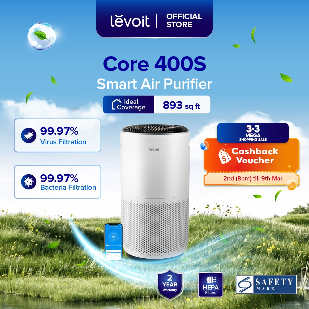 Levoit Core 400s Smart Air Purifier | Air Quality Monitor | H13 True HEPA | Low Noise 24dB | Large Coverage