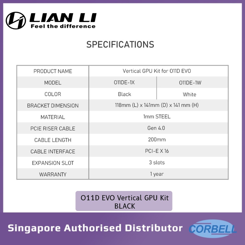 Lian Li O11 Dynamic EVO Desktop Case Accessories Vertical GPU Kit Gen 4.0 [ Black O11DE-1X/ White O11DE-1W ]