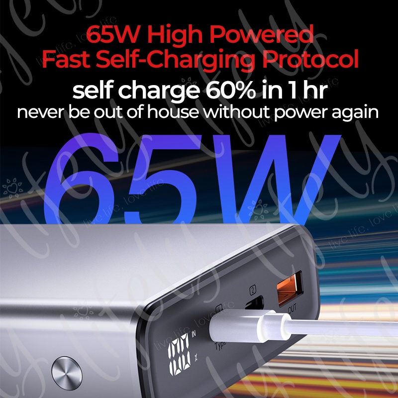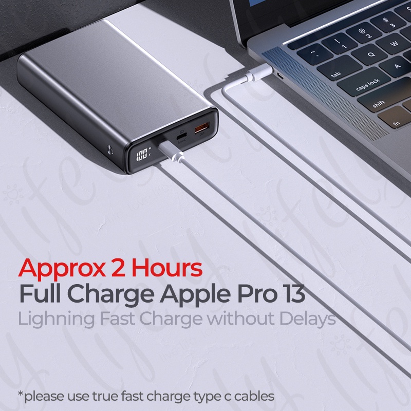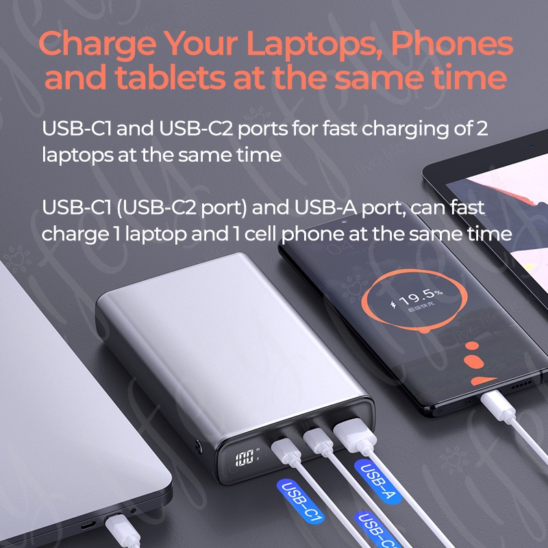Lifely Power Bank - 130W Laptop Powerbank 20000mAh, Powerbank Notebook Ultra Fast Charge, Type C, USB A Suits All Device
