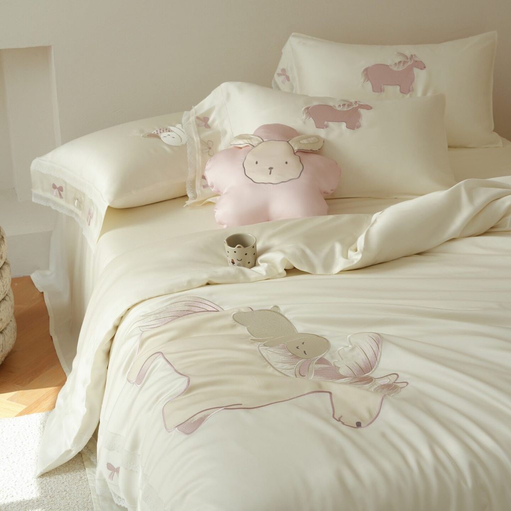 Lyocell Lenzing Tencel 100 Pieces Summer Quilt Four-Piece Set Solid Color Elephant Embroidery Cool Feeling Ice Silk Summer Nude Sleeping Silk Quilt Air Conditioning Quil