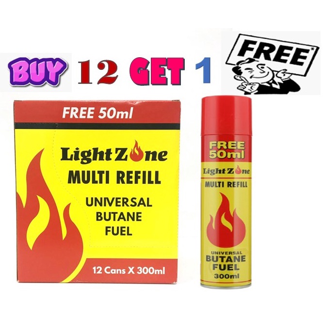 LightZone 300ml Lighter Gas Multi Refill Universal Butane Fuel (12PCS + 1 PC)