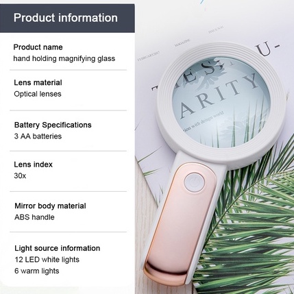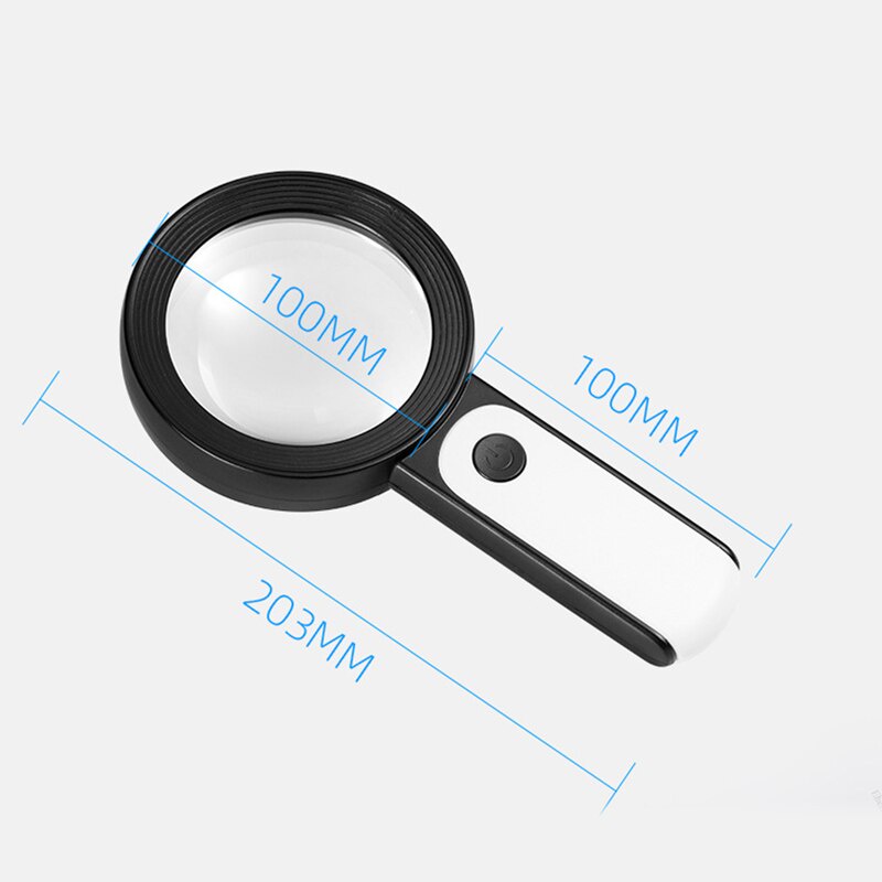 Lighted Magnifying Glass HD Imaging Optical Lens Handheld 30X Magnifier with 18 LED Illuminated Light for Elderly Reading Repair