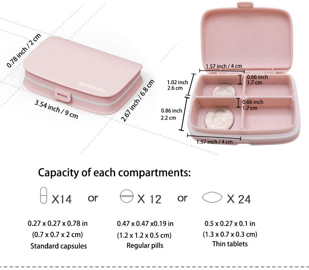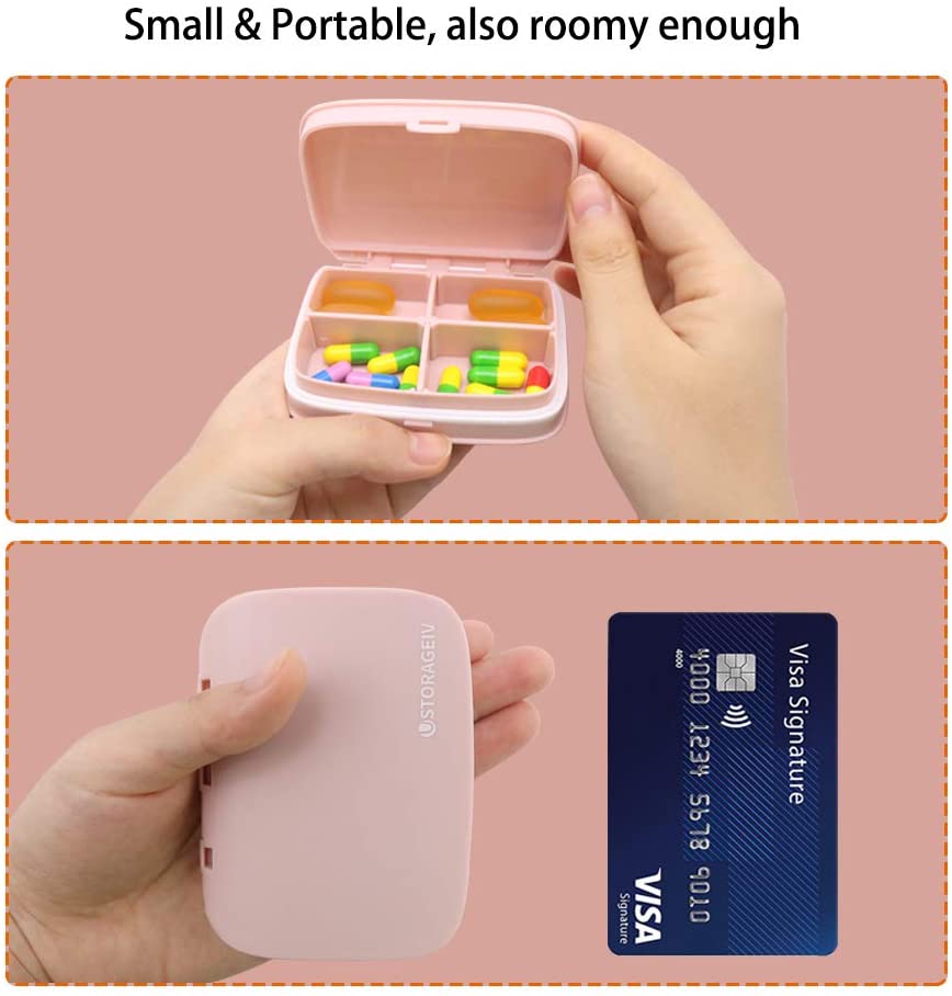 Little Cute Pill Box Moisture Proof, Portable Pocket Pill Case Carrier Medicine Organizer with 4 Detachable Deep Compartments