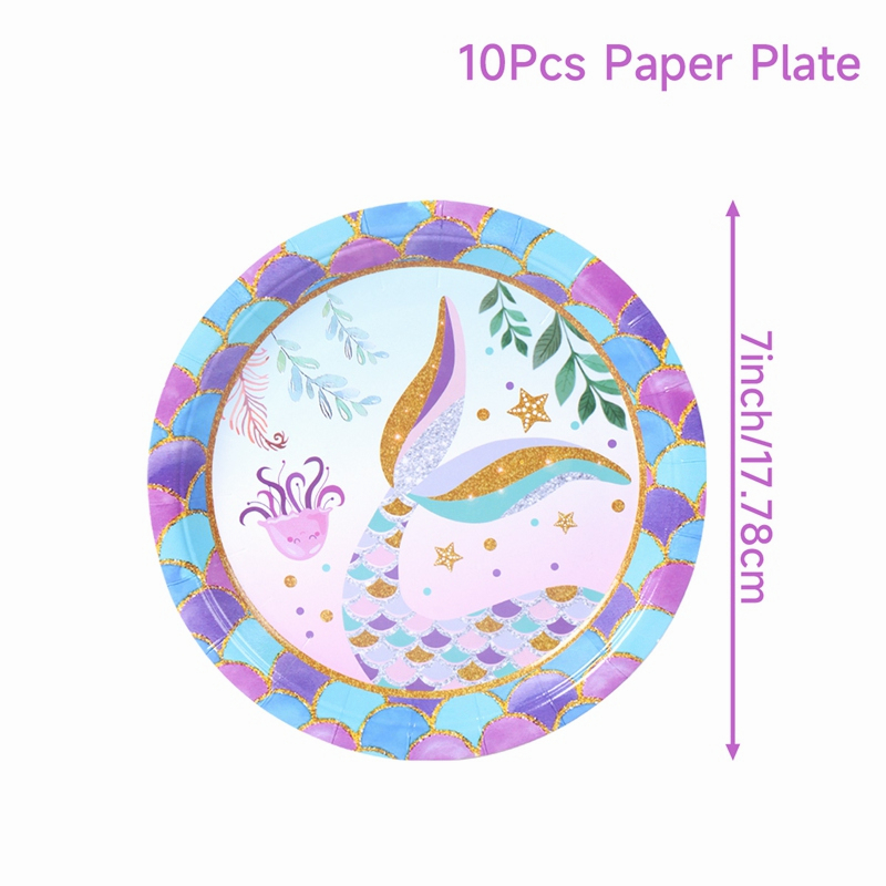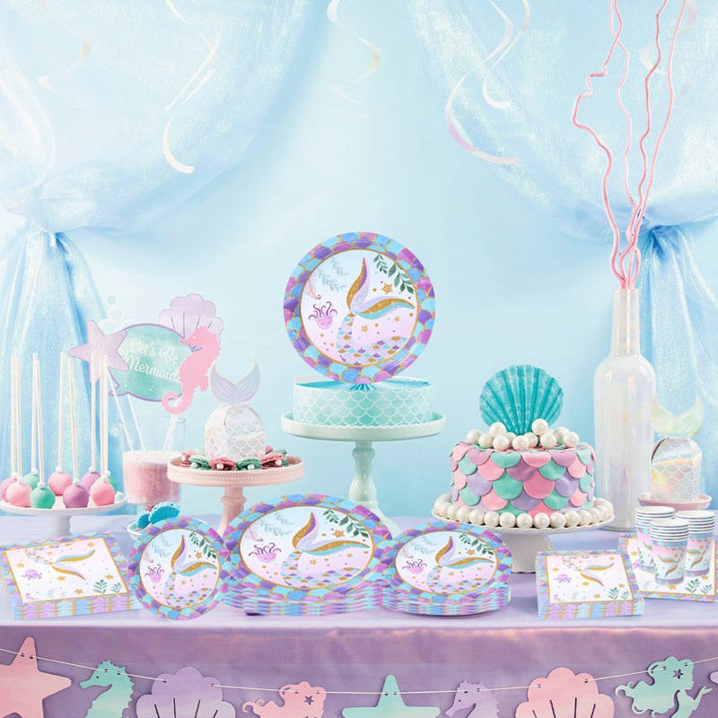 Little Mermaid Party Disposable Tableware Set Paper Plate Cup Napkin Mermaid Theme Party Decoration Under The Sea Girls 1st Birthday Party Decor Baby Shower Supplies