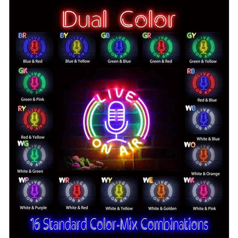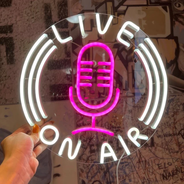 Live On Air Neon Sign Room Wall Decoration Flex Silicone LED Neon Sign On The Air Microphone Studio Recording Signal Dual Color LED Neon Sign