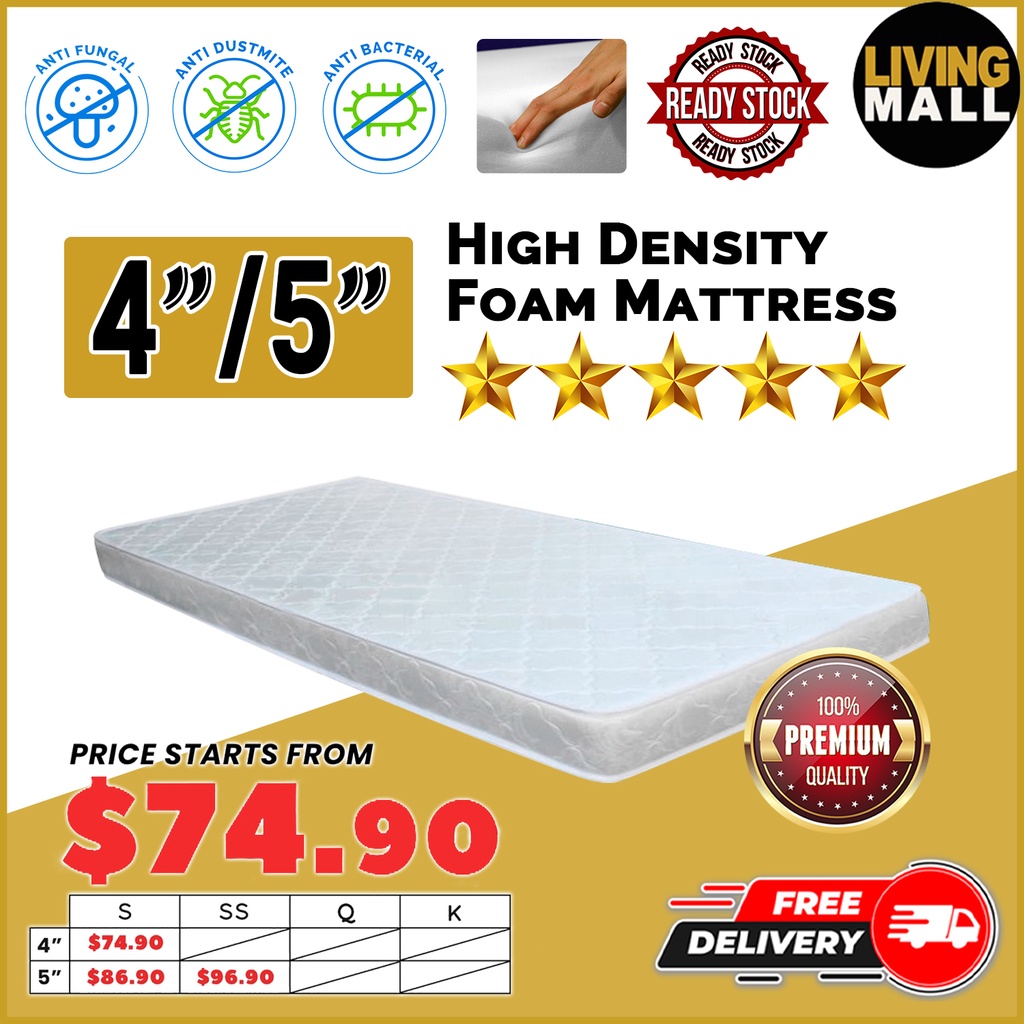 Living Mall 🔥 READY STOCK 🔥 - 4"/5" Single /Super Single High Density Foam Mattress