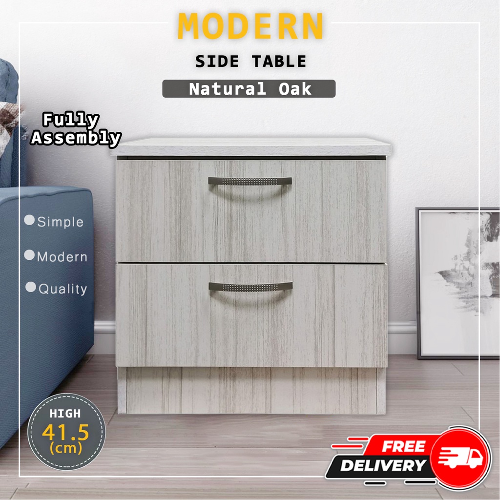 Living Mall Modern Wooden Side Table with 2 Layer Drawer Storage. Fully Assemble