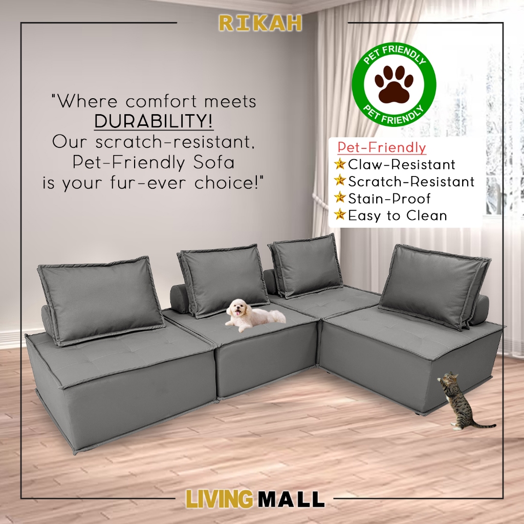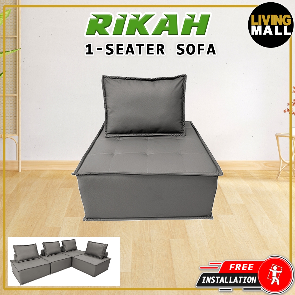 Living Mall Rikah 1-Seater Tofu Sofa PetFriendly Scratch-resist Leather Look Tec Fabric in Grey
