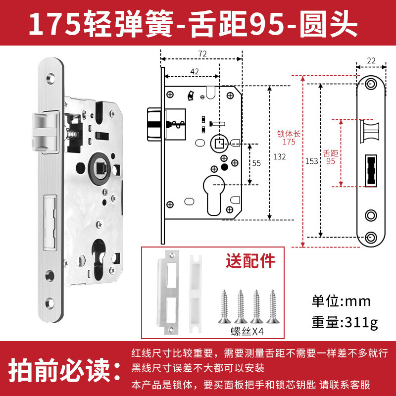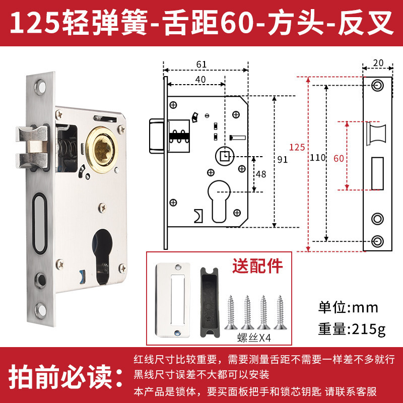 Lock Body Household Universal Bedroom Door Lock Indoor Lock Tongue Lock Tool Lock Core Wooden Door Lock Room Door Lock Core Room Accessories