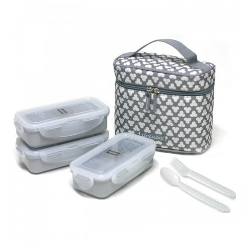 Lock n Lock Clover Lunch Box - Lunch Box Set of 3 pcs (with spoon, fork and bag)