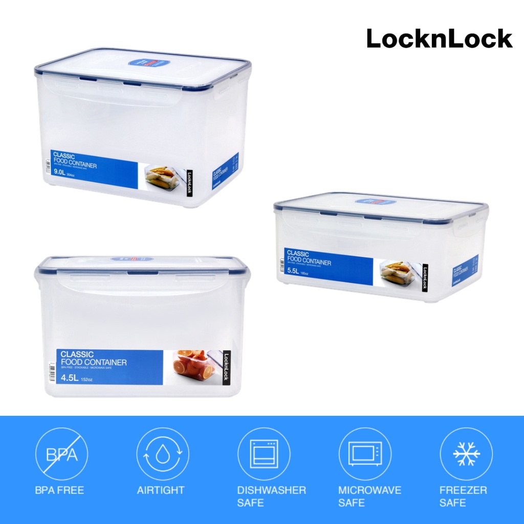 LocknLock Large Airtight Food Container 4.5L + 5.5L + 9.0L (with LocknLock slim cutting board 3P set)
