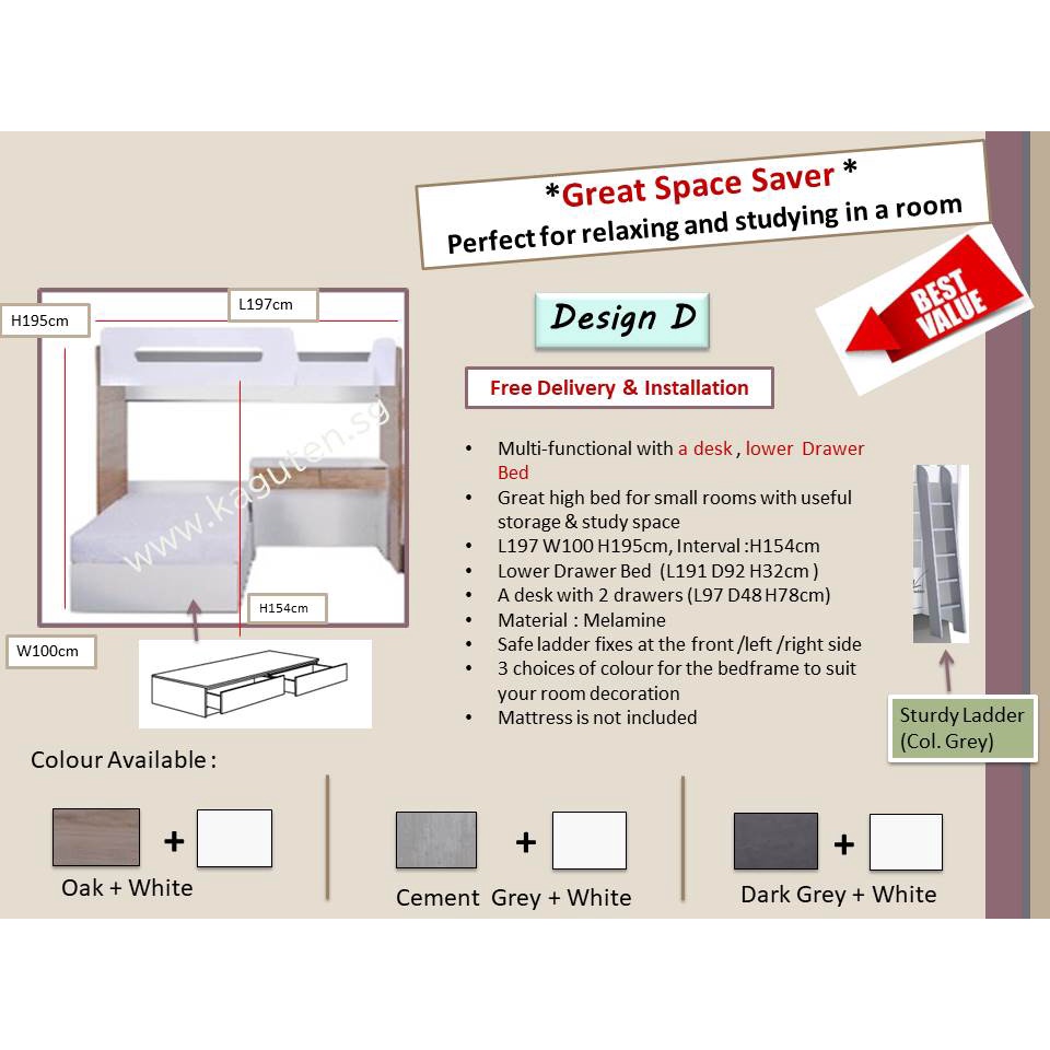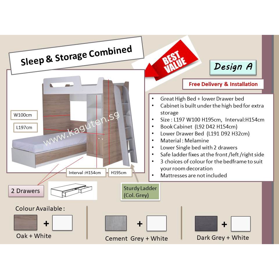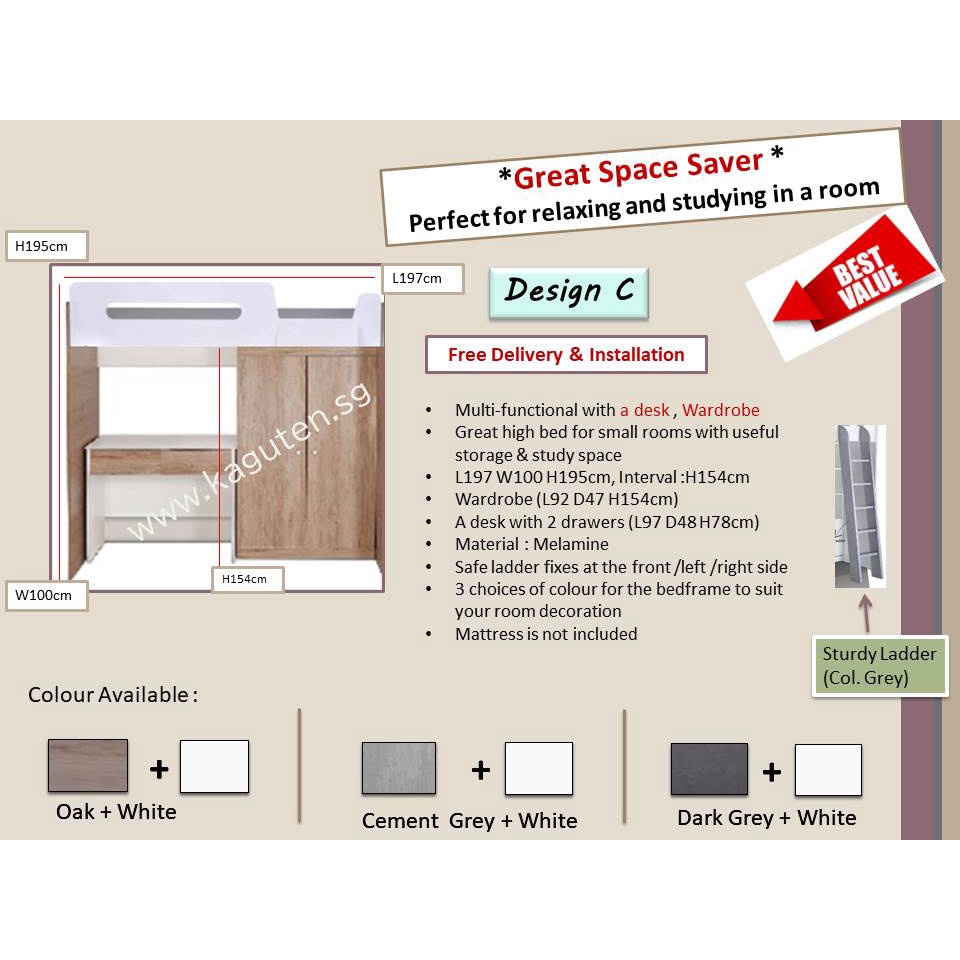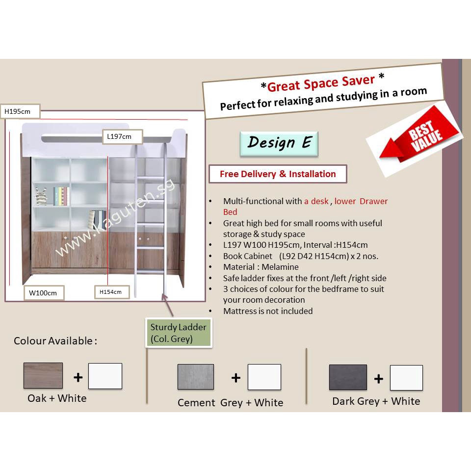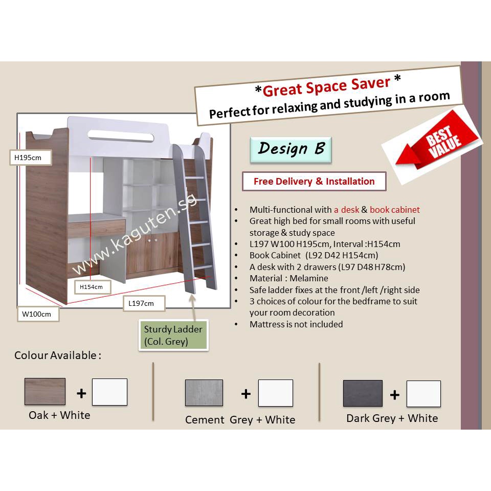 Loft bed Single 3ft Wooden Loft Bed for Small Room Multifunctional Loft Bed Space Saving Loft Bed [KAGUTEN]