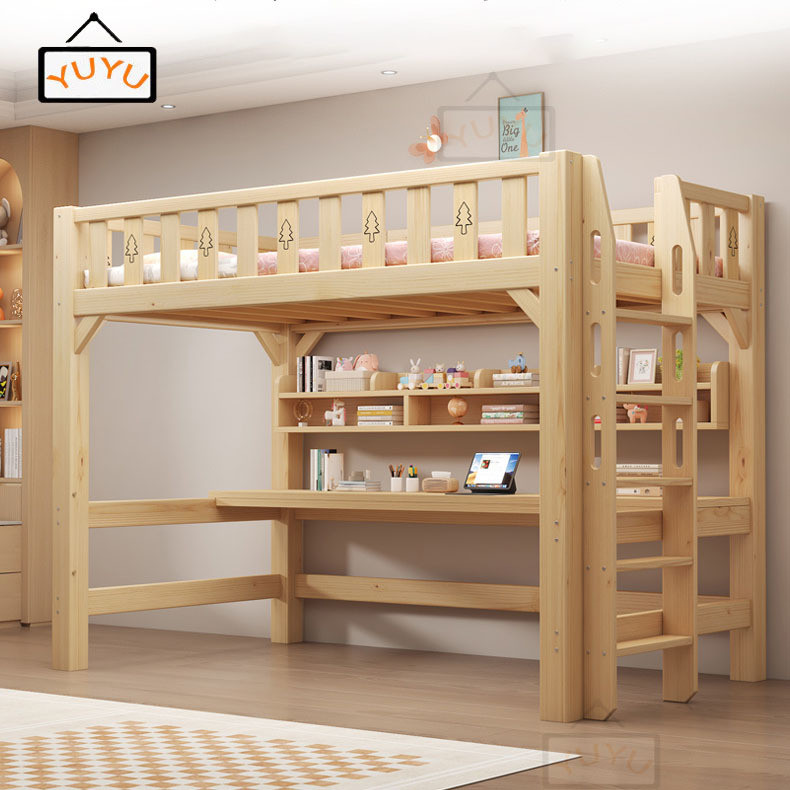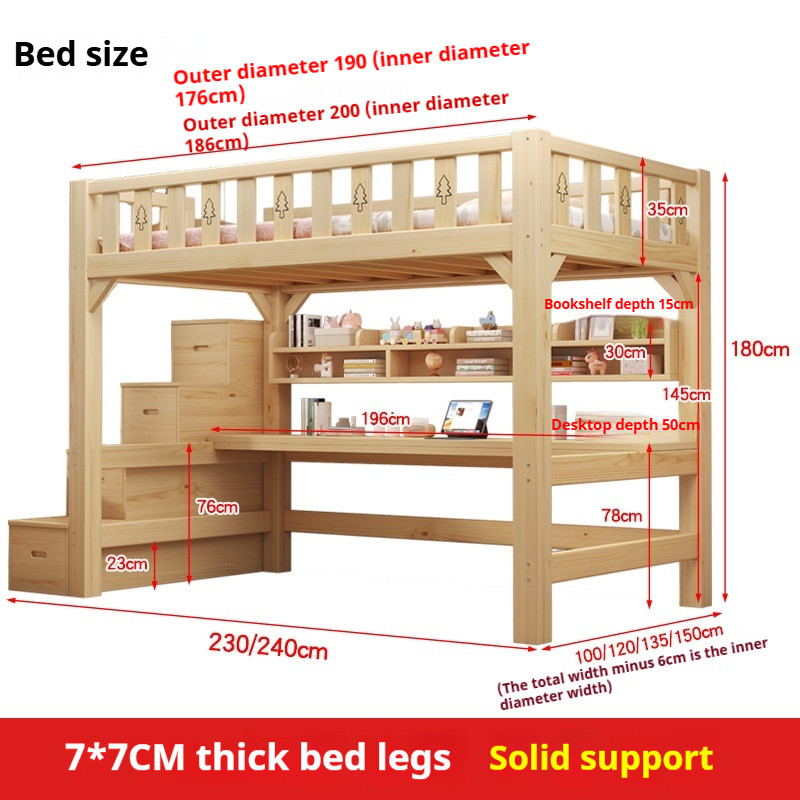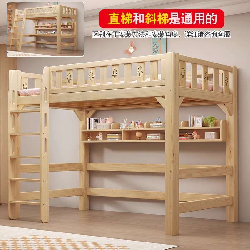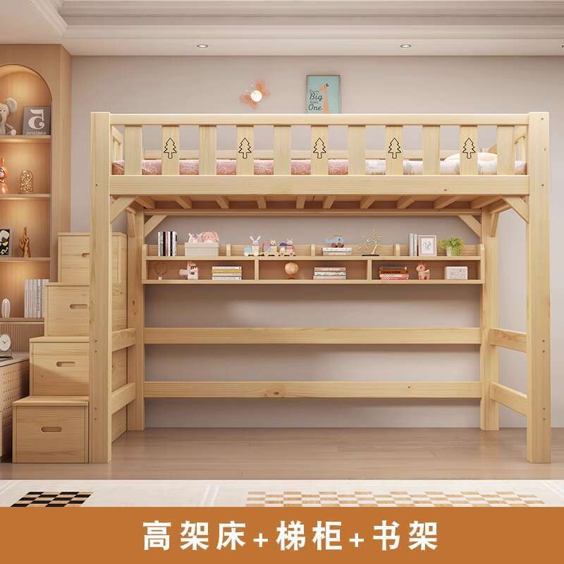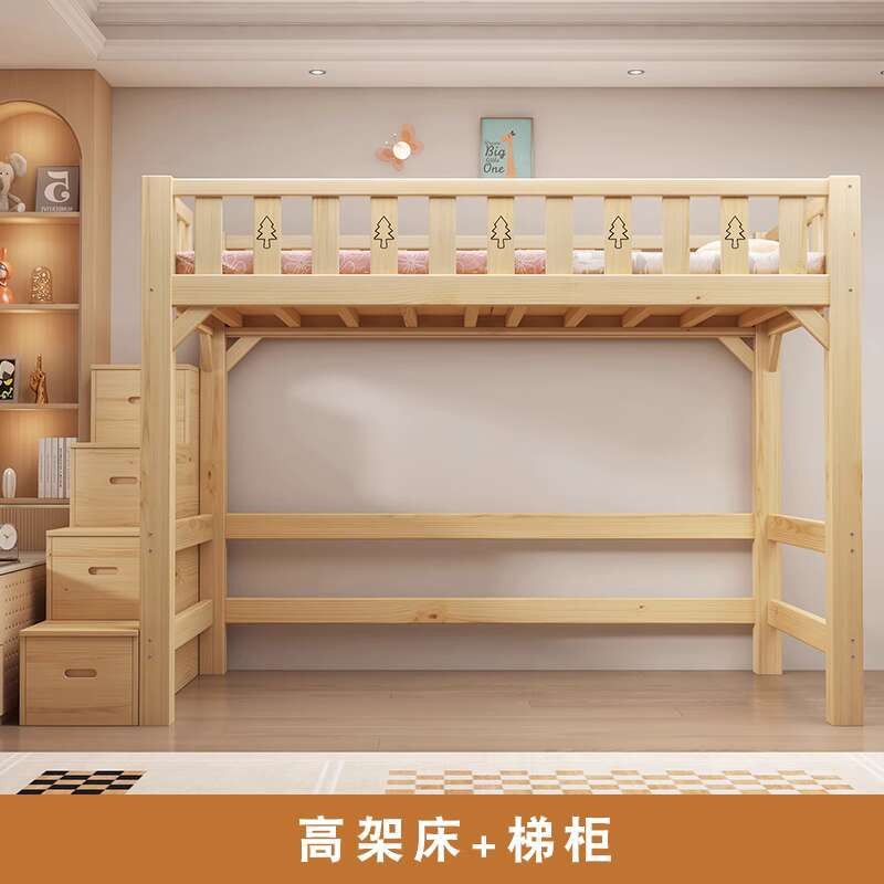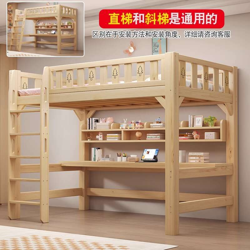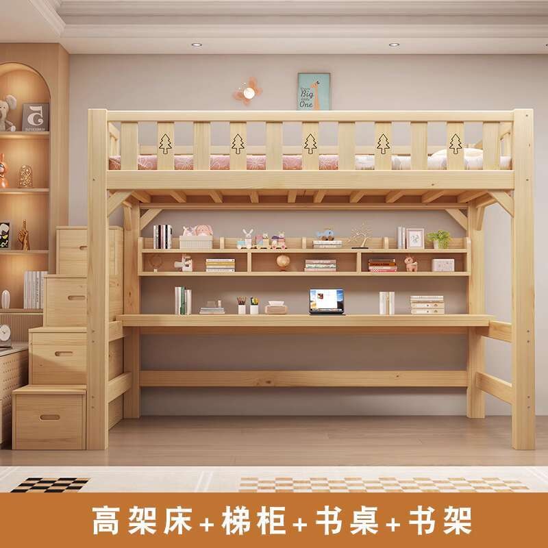 Loft bed solid wood ladder cabinet upper bed lower table combination ZX