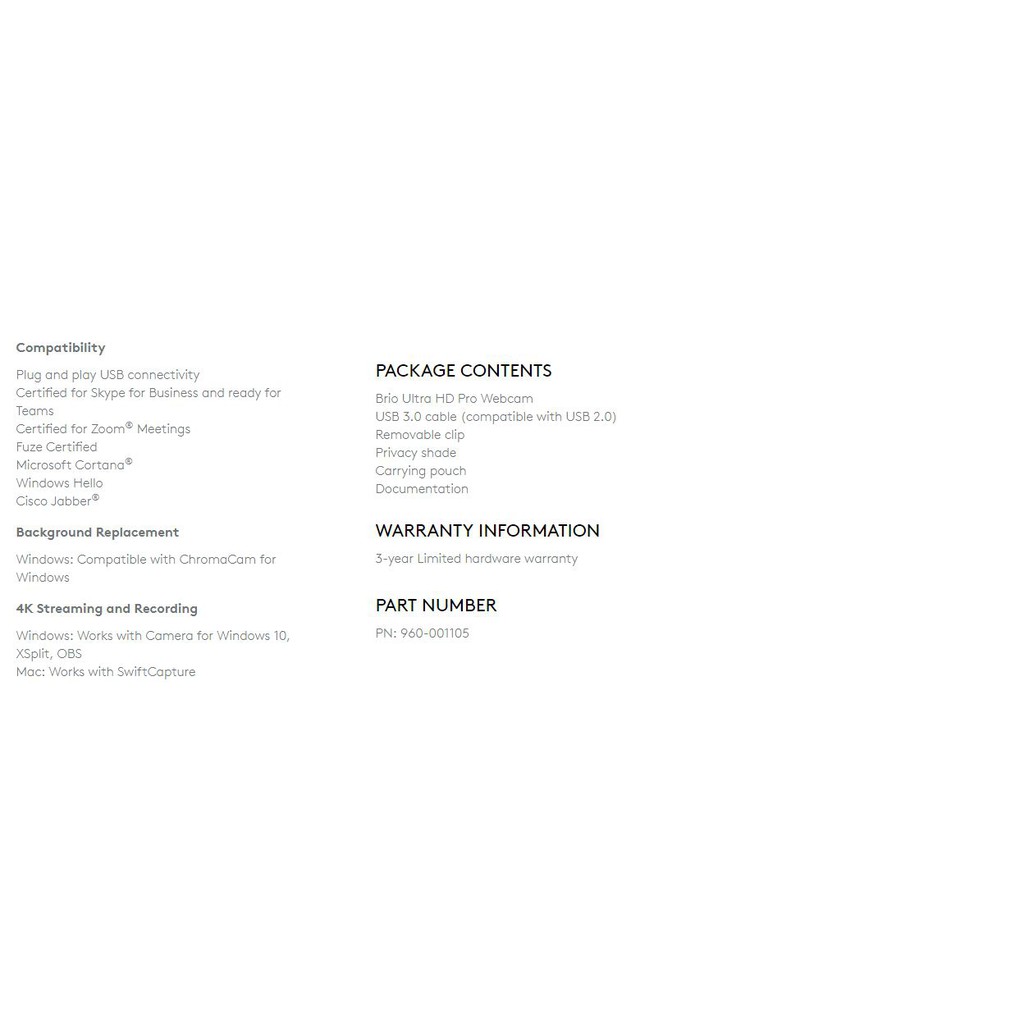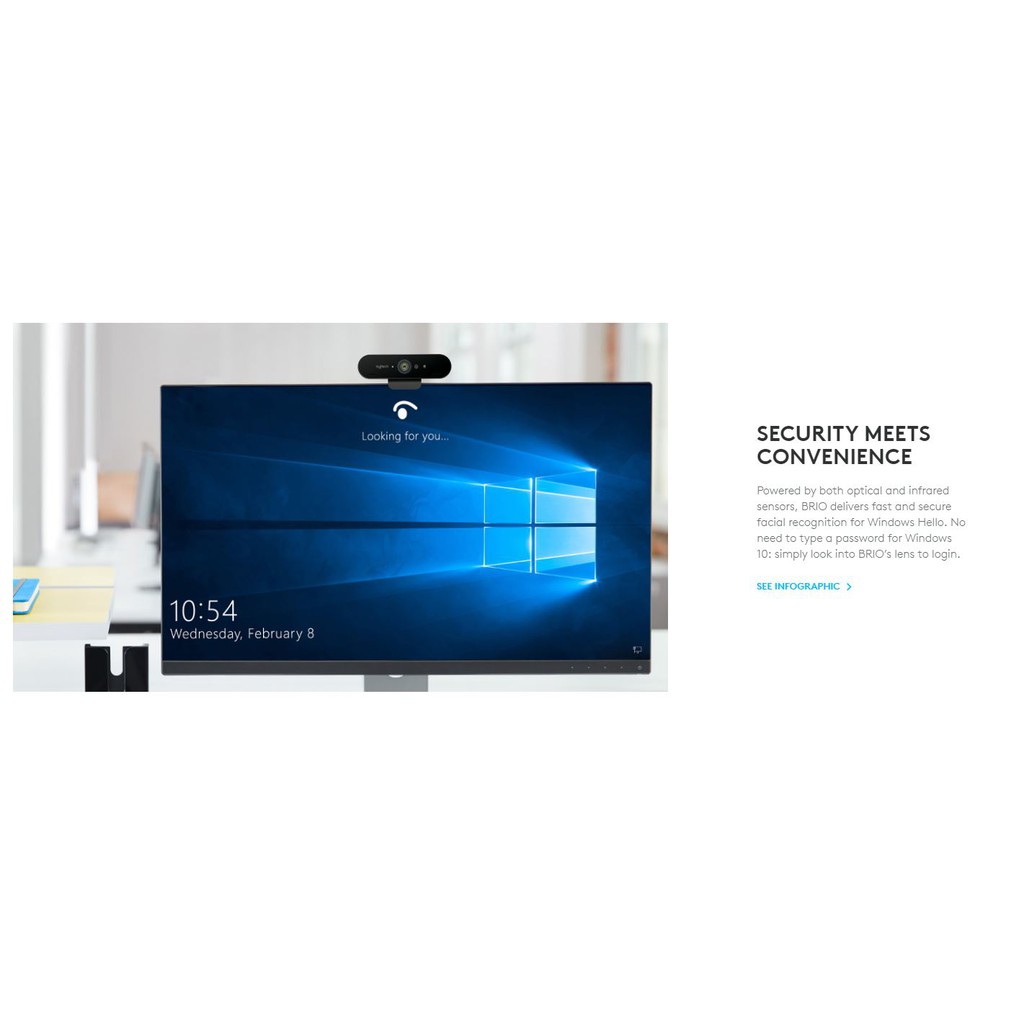 Logitech Brio 4k Ultra HD Webcam| 4K webcam with HDR and Windows Hello support | 1 years warranty | 960-001196