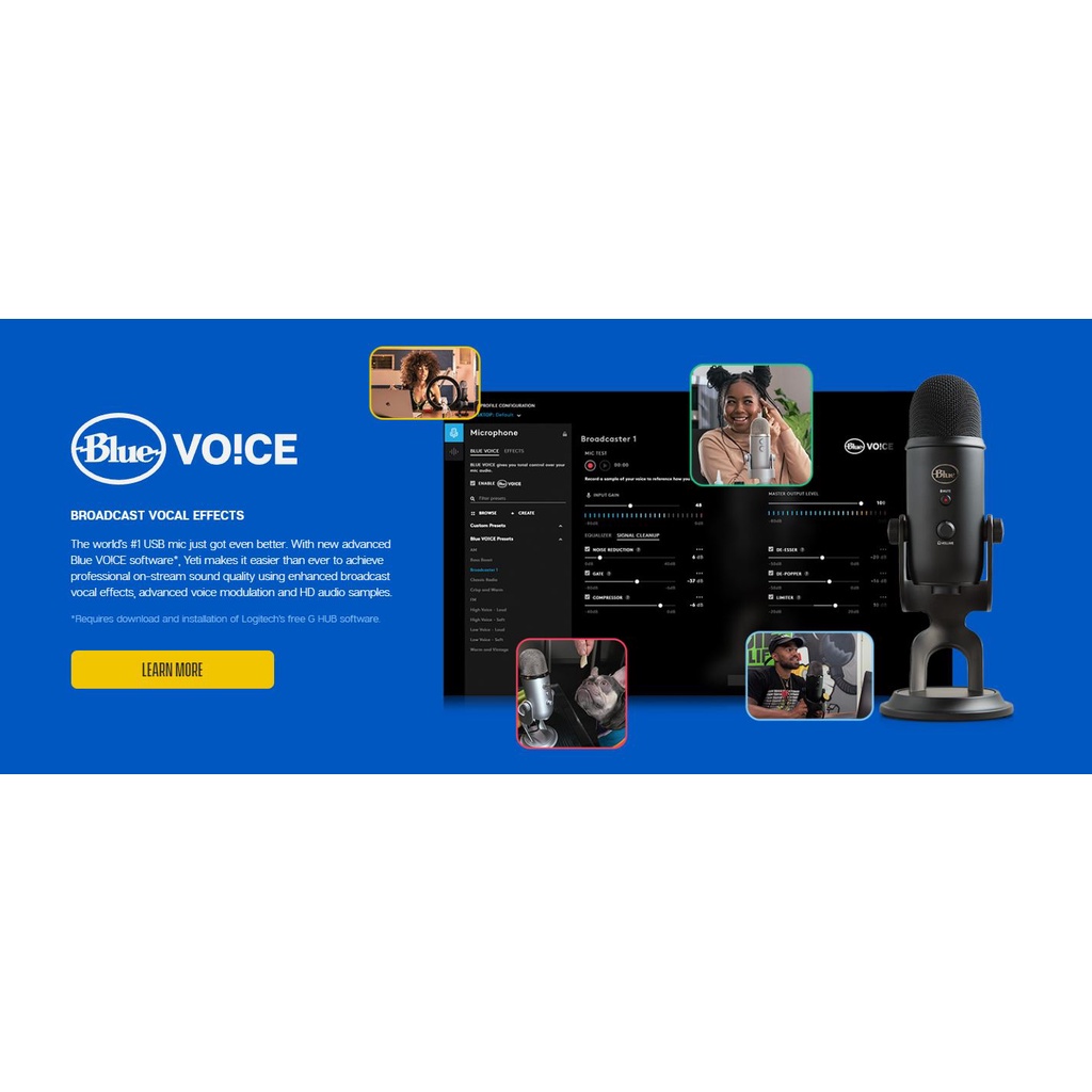 Logitech Creators Blue Yeti USB Microphone For Recording and Streaming on PC Mac Blue VO!CE effects 4 Pickup Patterns