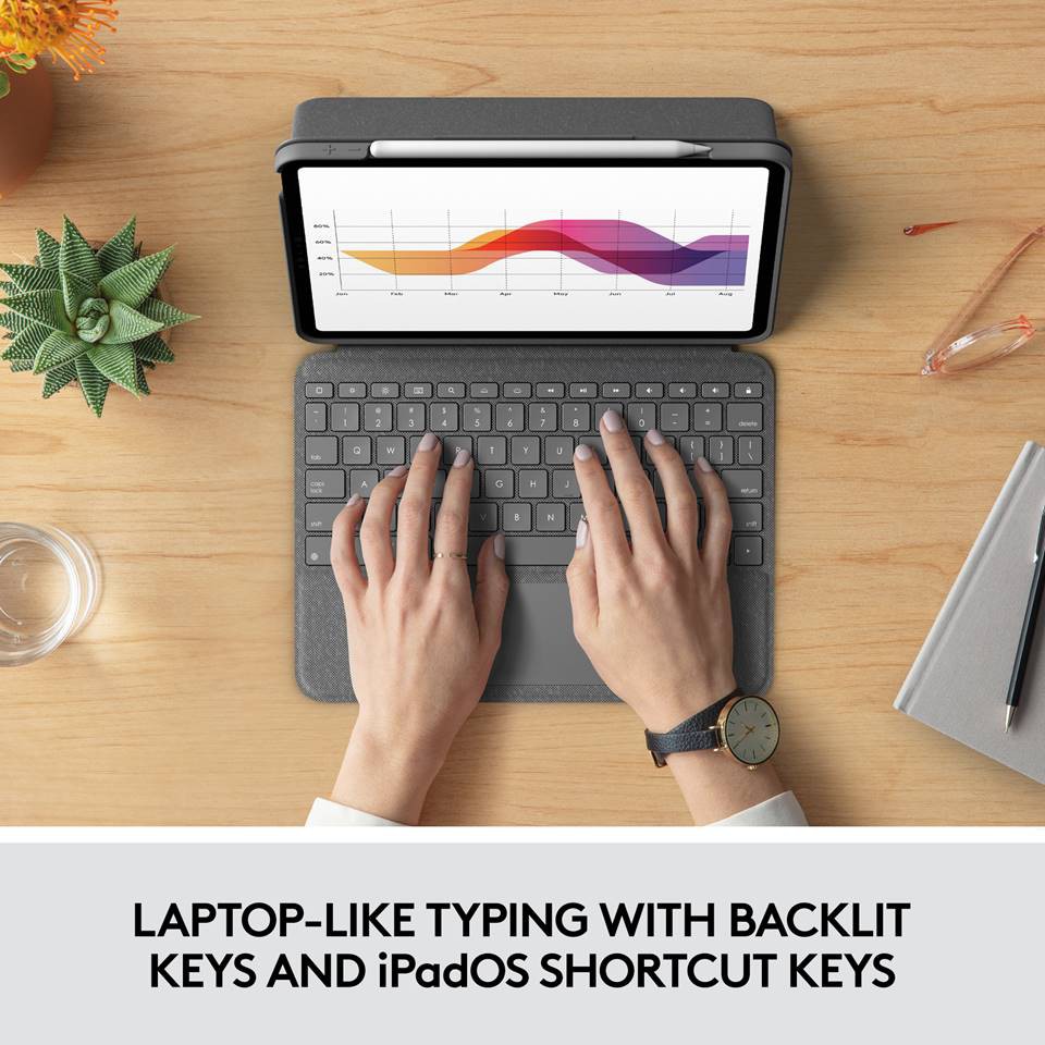 Logitech Folio Touch Backlit keyboard case with trackpad for iPad Air 10.9-inch 4th, 5th & M2 Generation - EBL