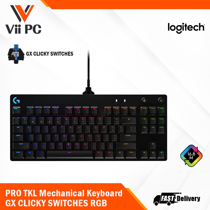 Logitech G PRO Keyboard with GX Blue Clicky Switches, Wired Mechanical gaming keyboard