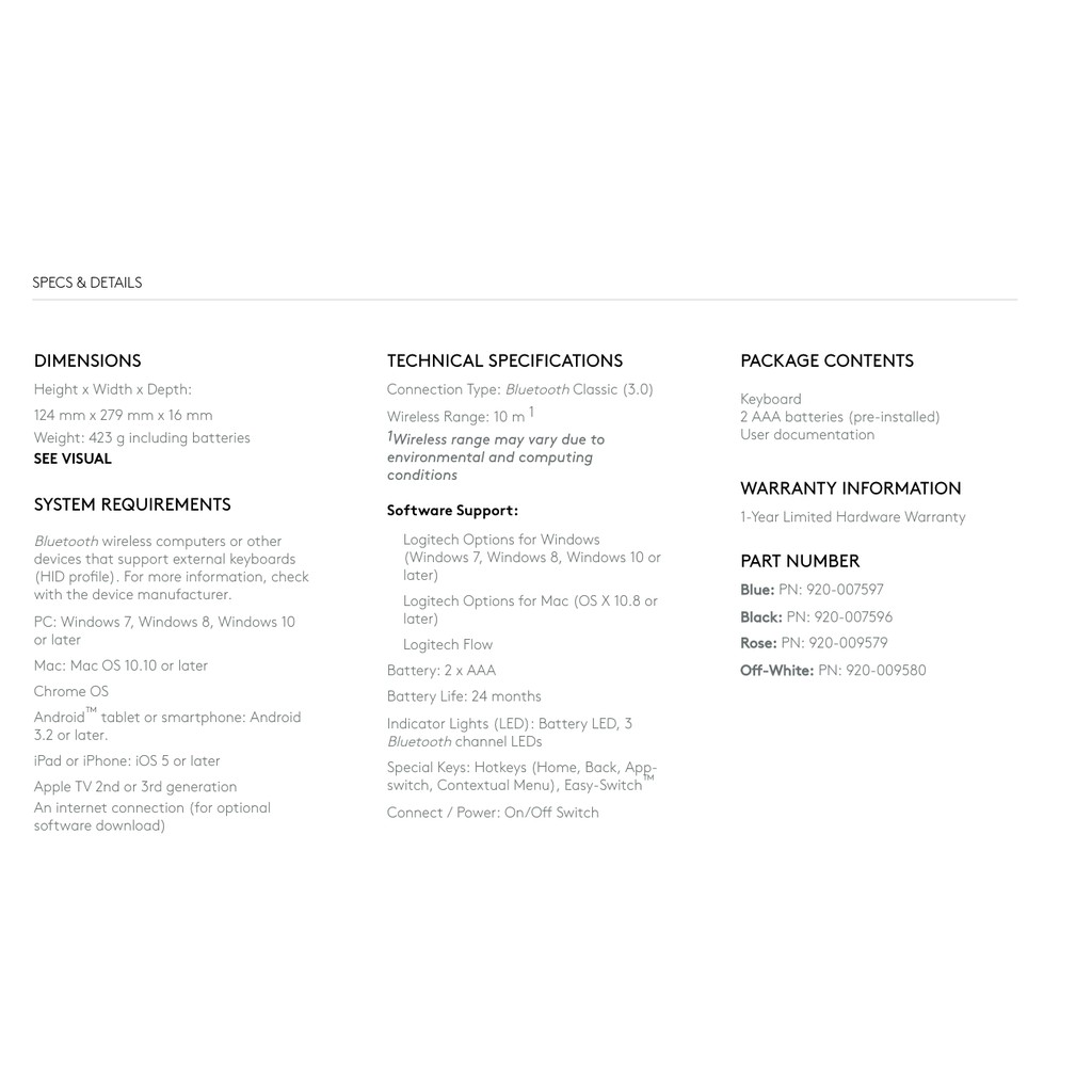 Logitech K380 K380s Multi-device Bluetooth Wireless Keyboard Windows MacOS iOS Surface Chrome 1 year warranty