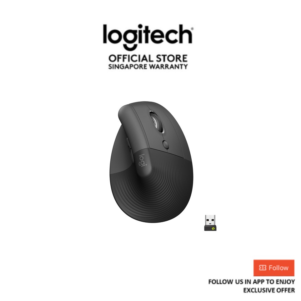 Logitech Lift Vertical Ergonomic Mouse, Wireless, Bluetooth, Quiet clicks, 4 buttons