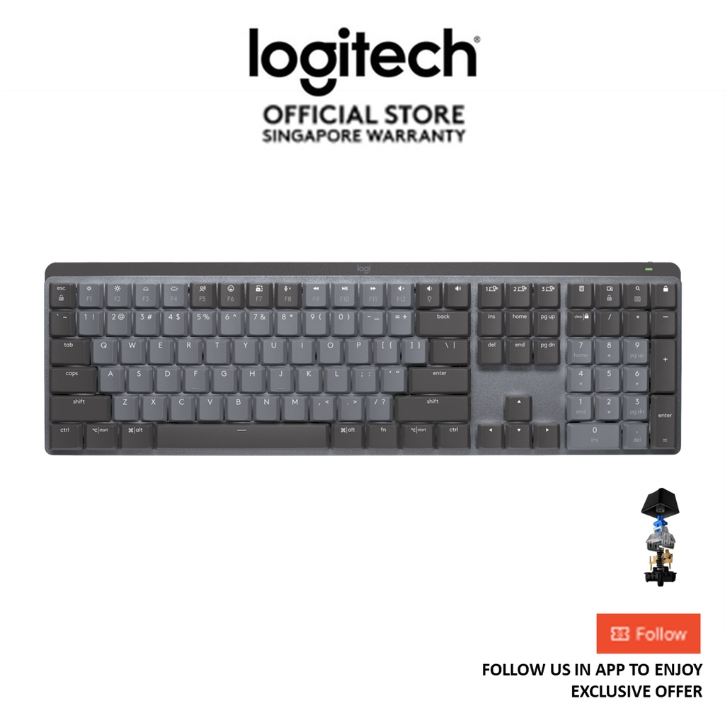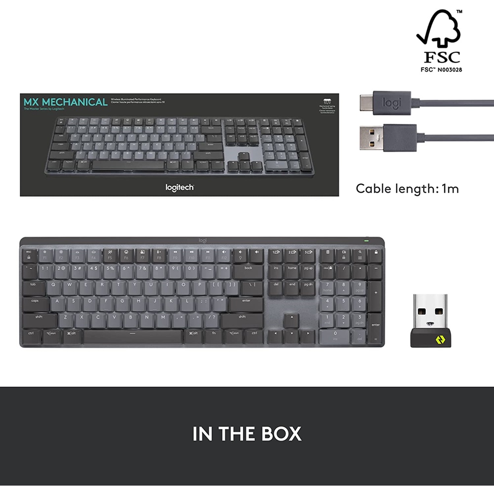 Logitech MX Mechanical Wireless Keyboard Graphite, Backlit keys, Multi Connectivity, Long Battery Life, Fn key functions