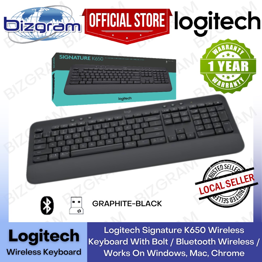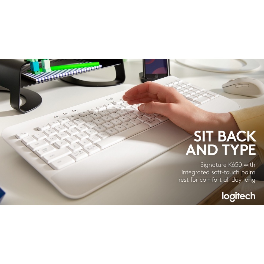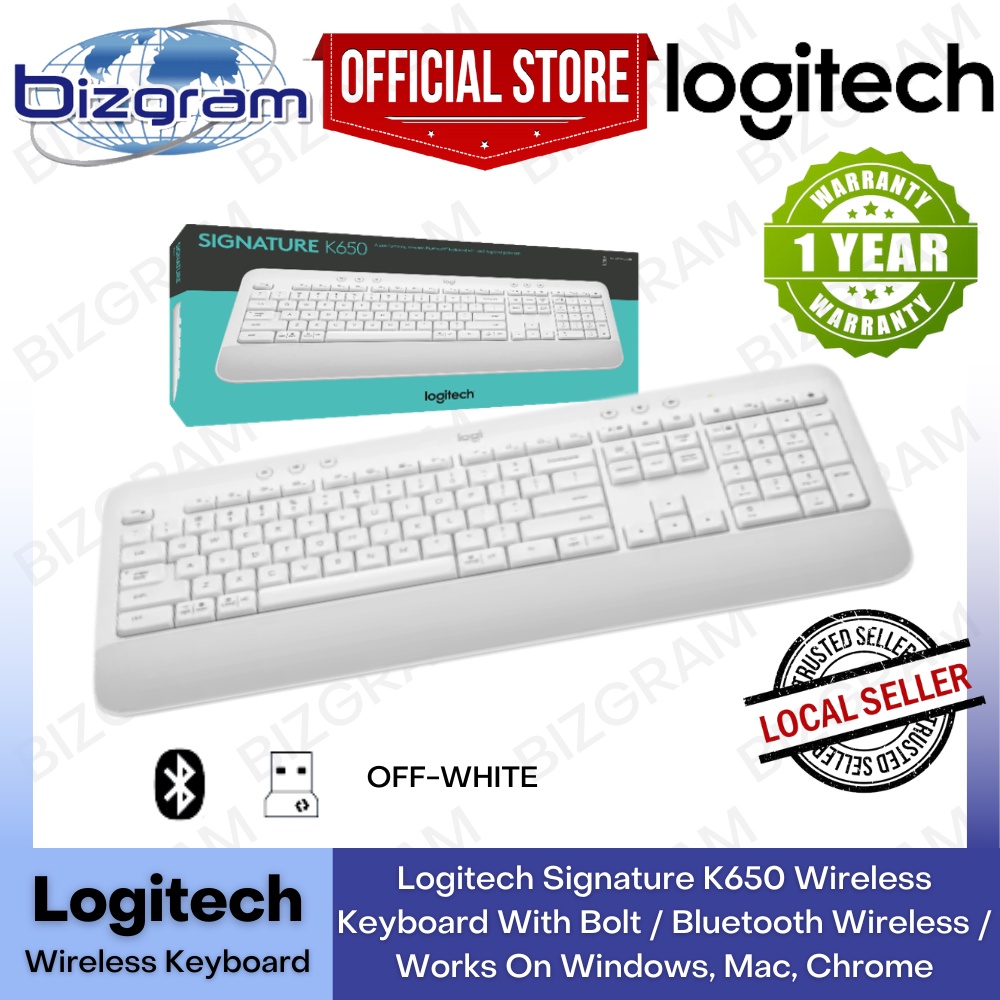 Logitech Signature K650 Wireless Keyboard With Bolt / Bluetooth Wireless / Works On Windows, Mac, Chrome, Graphite/White