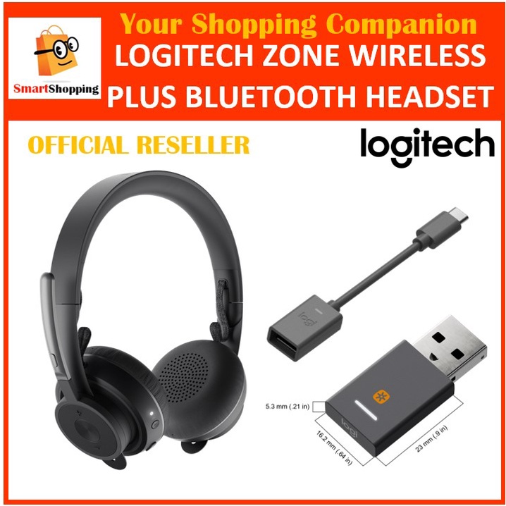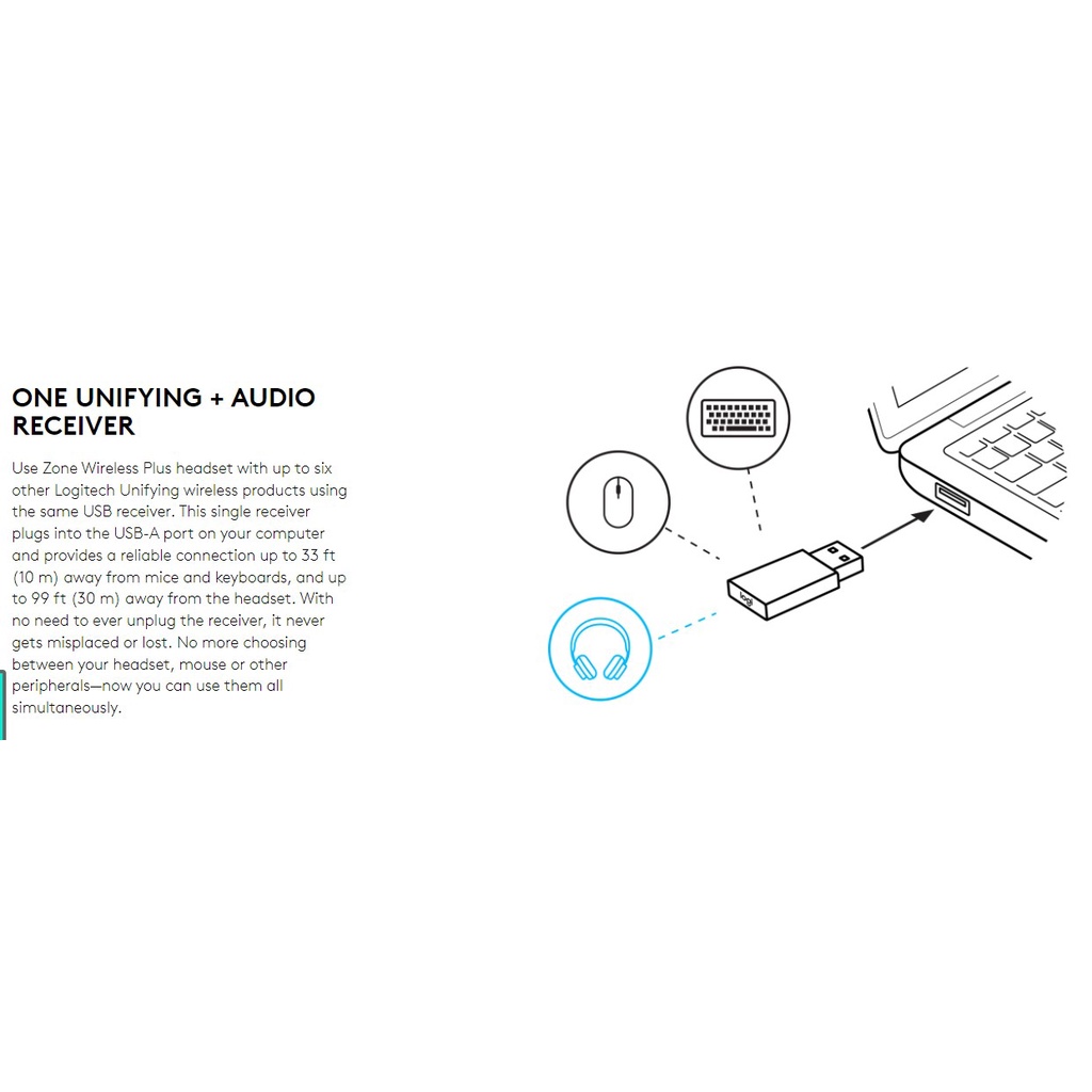 Logitech Zone Plus Wireless Bluetooth ANC Headset Unifying Receiver Qi Wireless Charging 2 Years SG Warranty