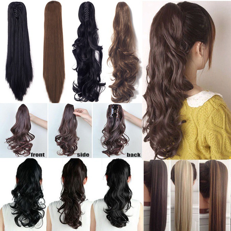 Long Curly Claw Clip In Ponytail Ombre Synthetic Pony Tail Hair Wigs
