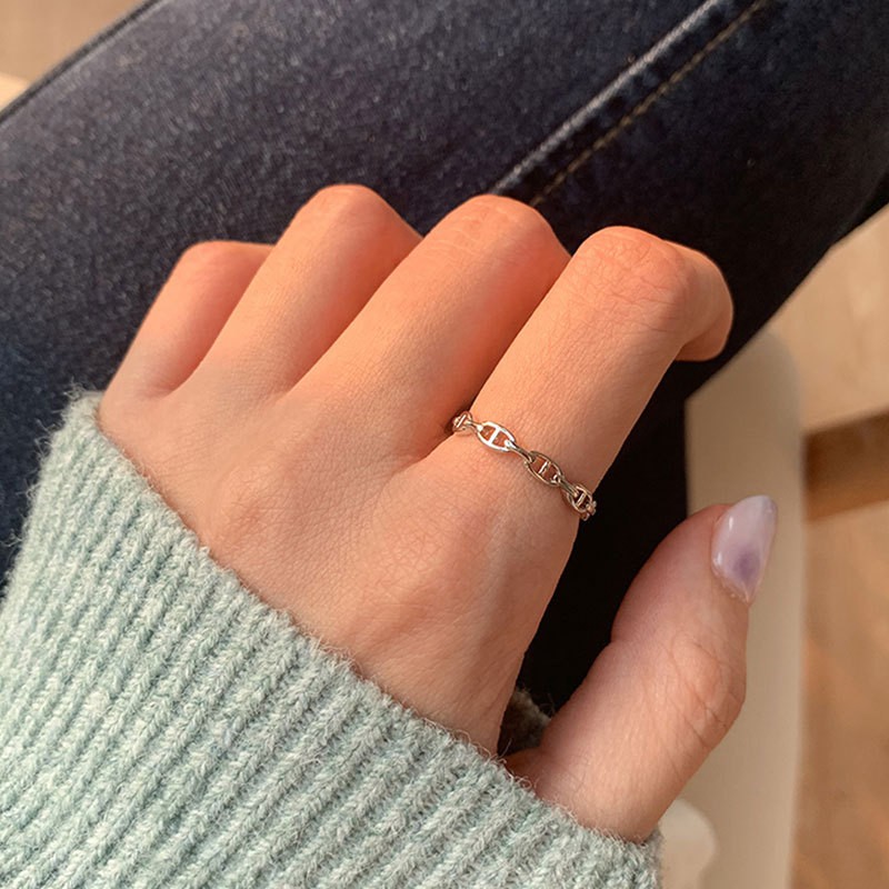 Love2Self J054 Minimalist Korean Thin Chain Ring Index Finger Pig Nose Ring For Women Size 6 Adjustable