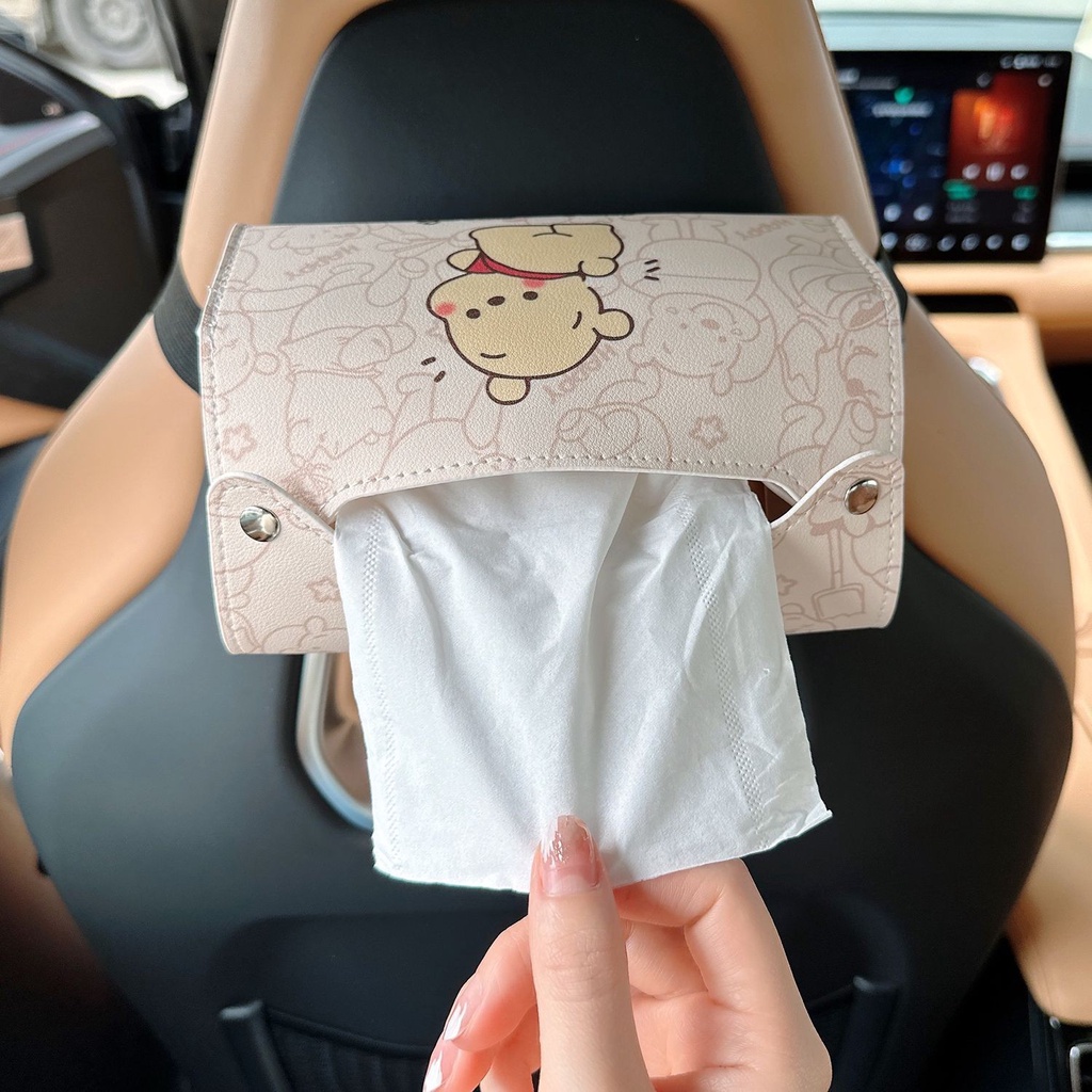 Lovely Winnie Pooh Car Tissue Box Cute Cartoon Car Interior AccessoriesTissue Bag Hanging Car Tissue Box Car Armrest Box