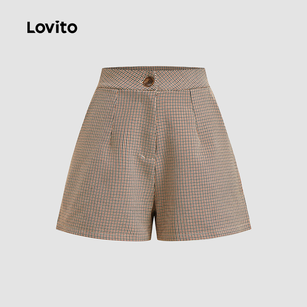 Lovito Casual Shorts Plain Button Shorts for Women LNL61123