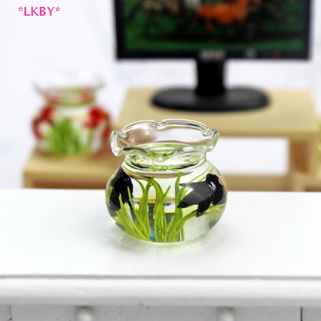 Luckybabys> Dollhouse Miniature Glass Fish Bowl Aquarium Doll House Home Ornament new