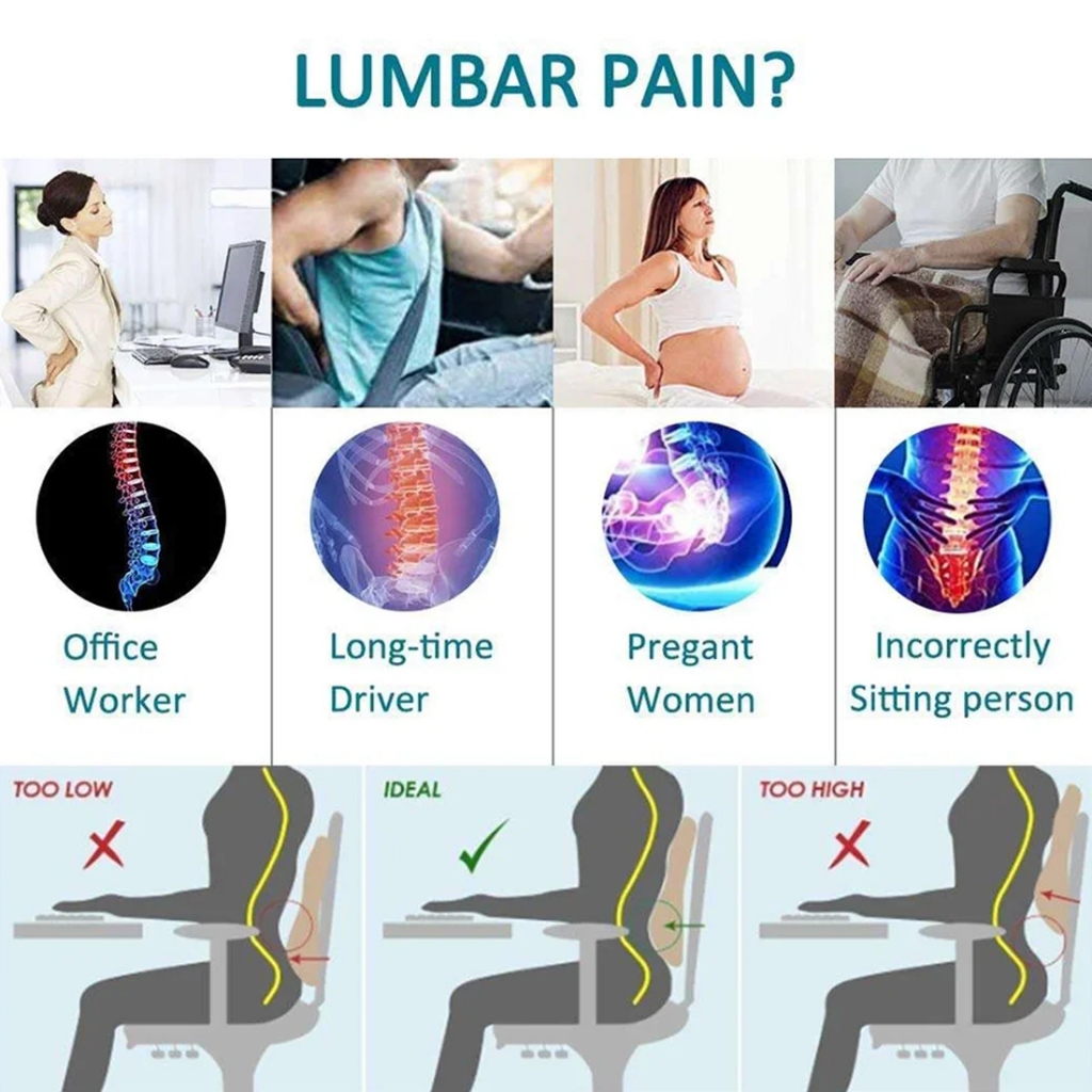 Lumbar Support Pillow for Office Chair Back Support Pillow, Memory Foam Back Cushion for Pain Relief Improve Posture