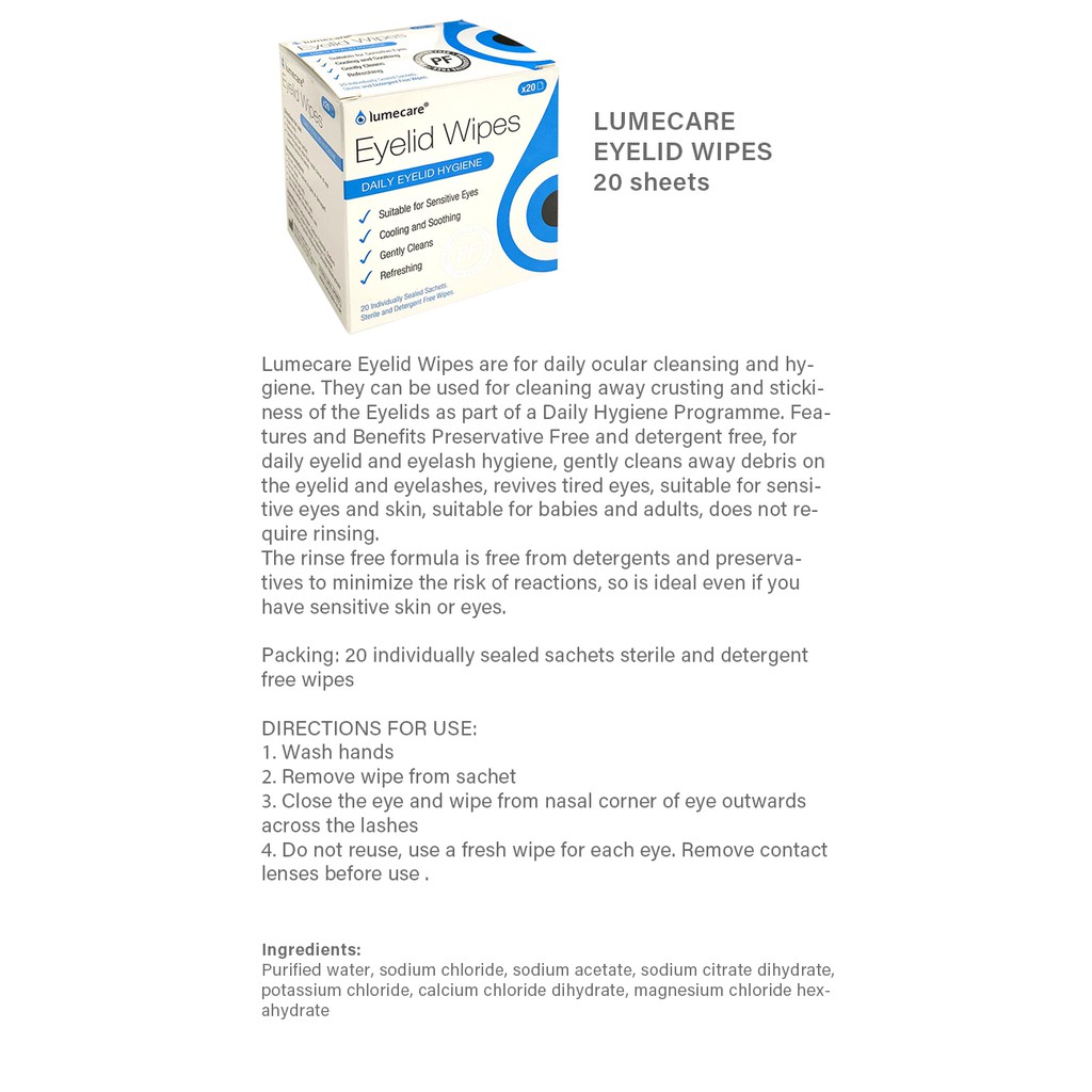 Lumecare Eyelid Wipes 20 sheets - daily eyelid hygiene/ Eye care