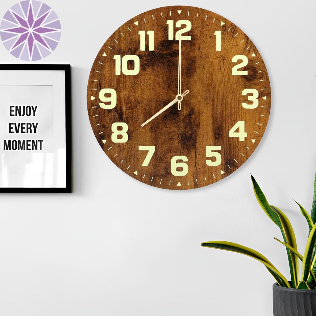 Luminous Wall Clocks Wooden Glow in The Dark Clock 12 inch Silent Non-Ticking Lighted Wall Clock SHOPTKC5869