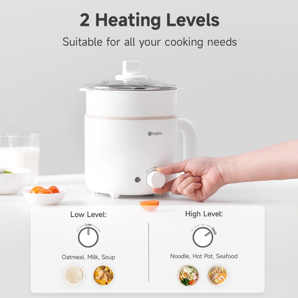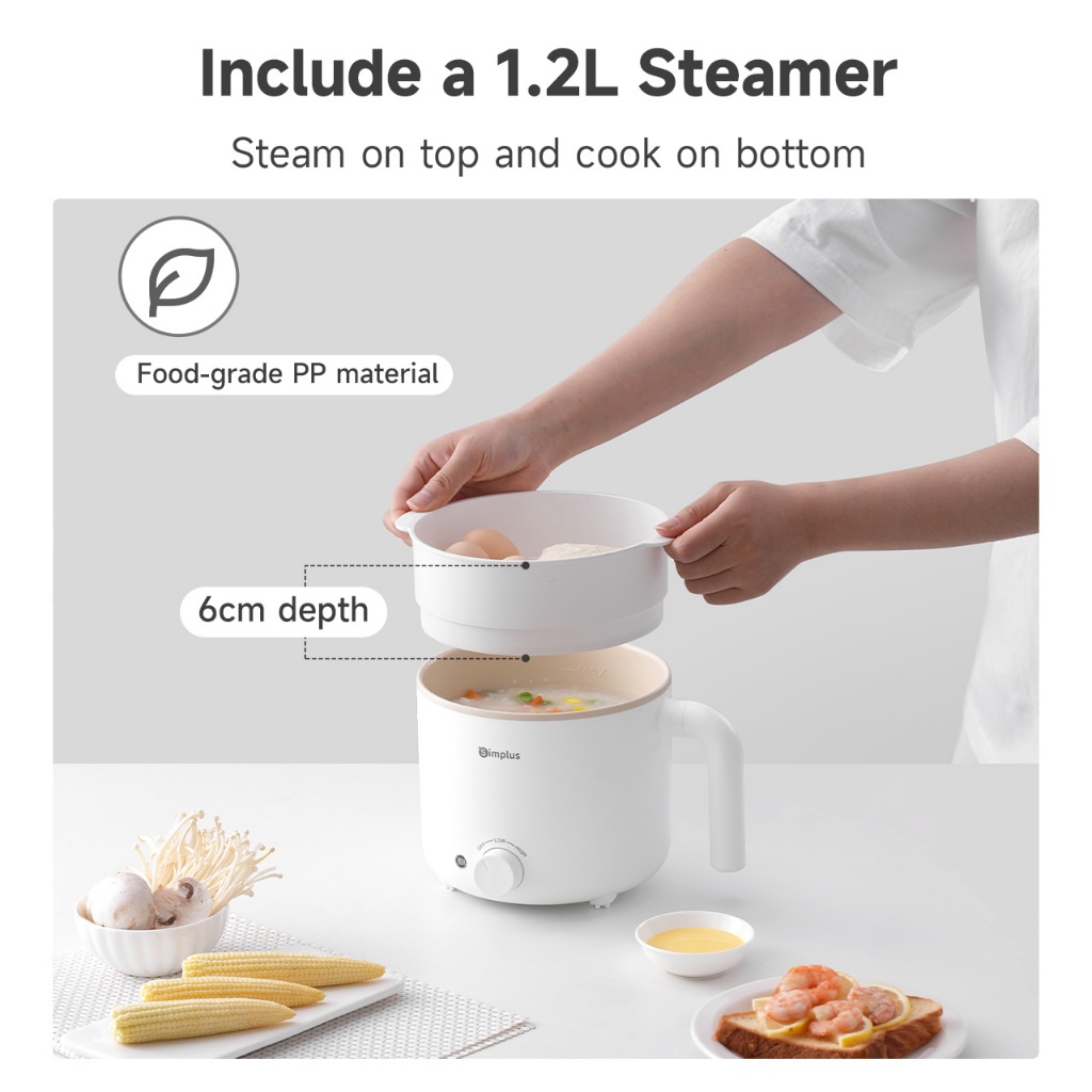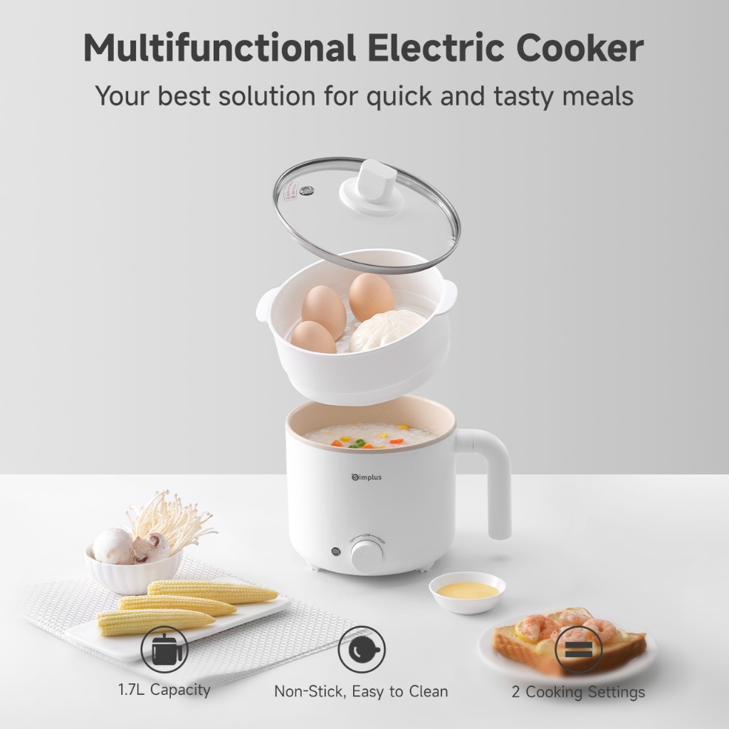 Simplus Kit 1.7L Electric Cooker丨 630W Quick Heating丨Non-Stick Coating丨2 Temperature Settings DZGH011