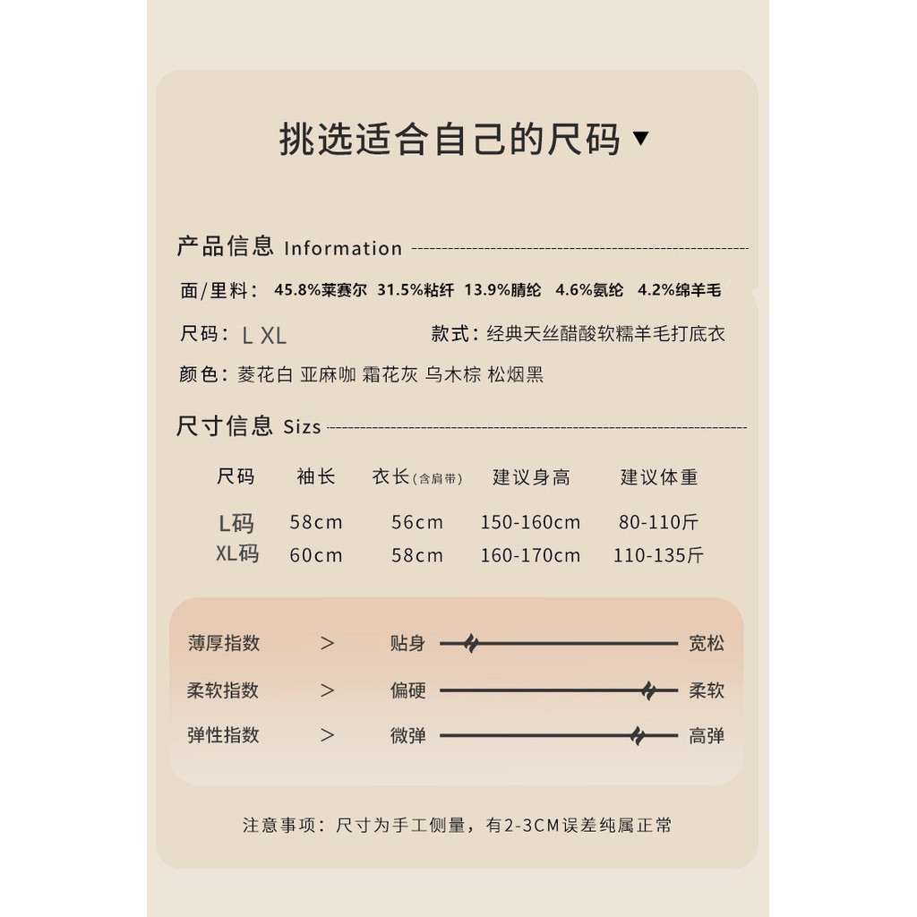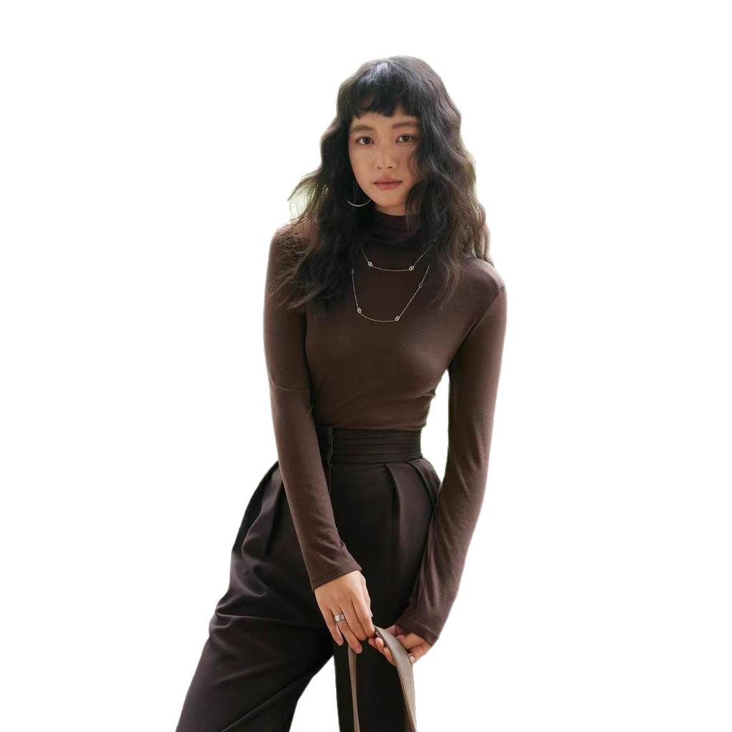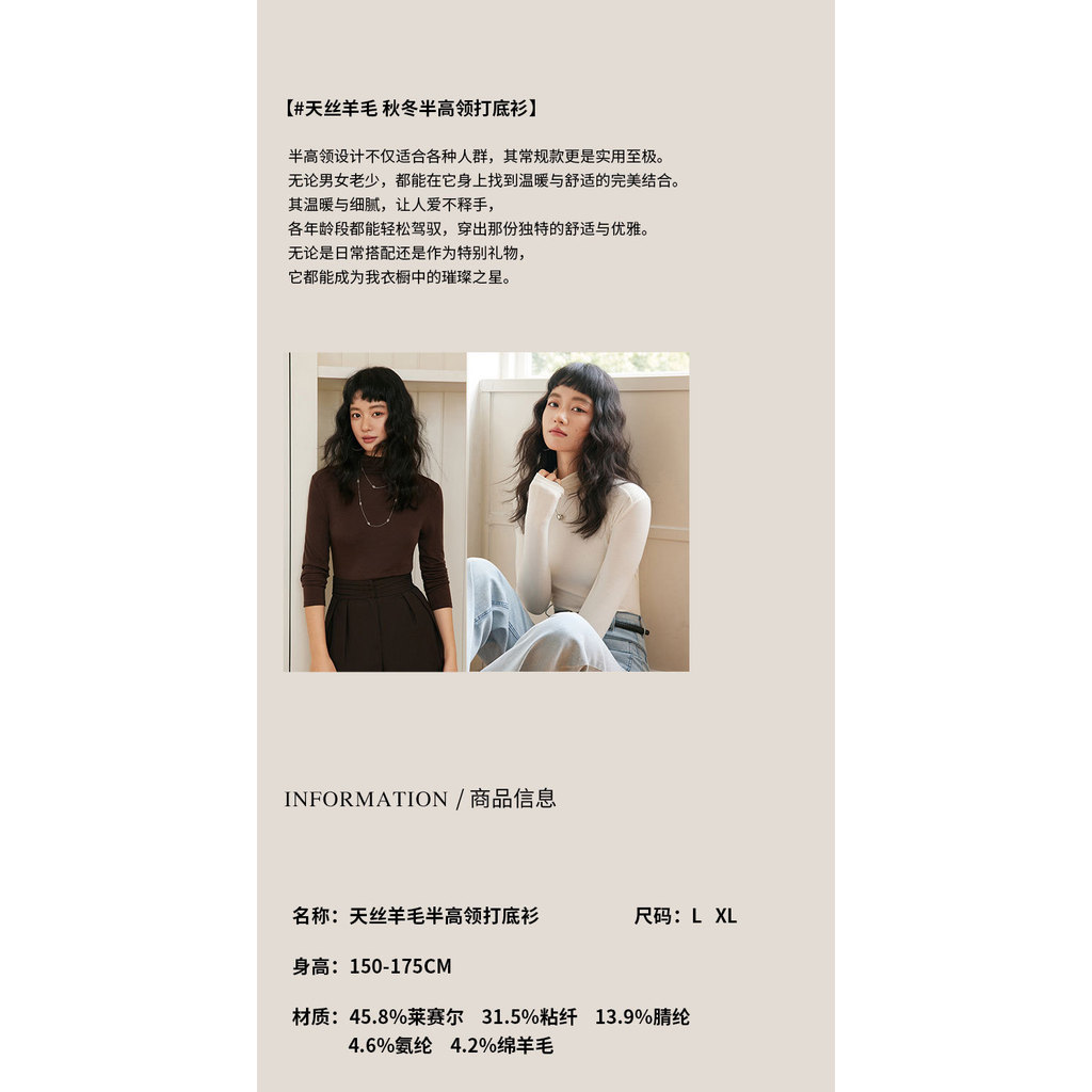Soft Waxy Skin-Friendly Wool Bottoming Shirt All-Match Warm Mid-High Collar Long-Sleeved T-Shirt Lyocell Tencel In