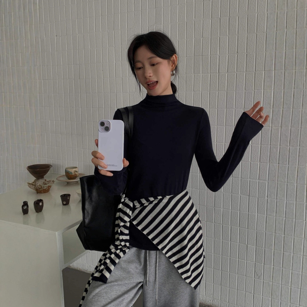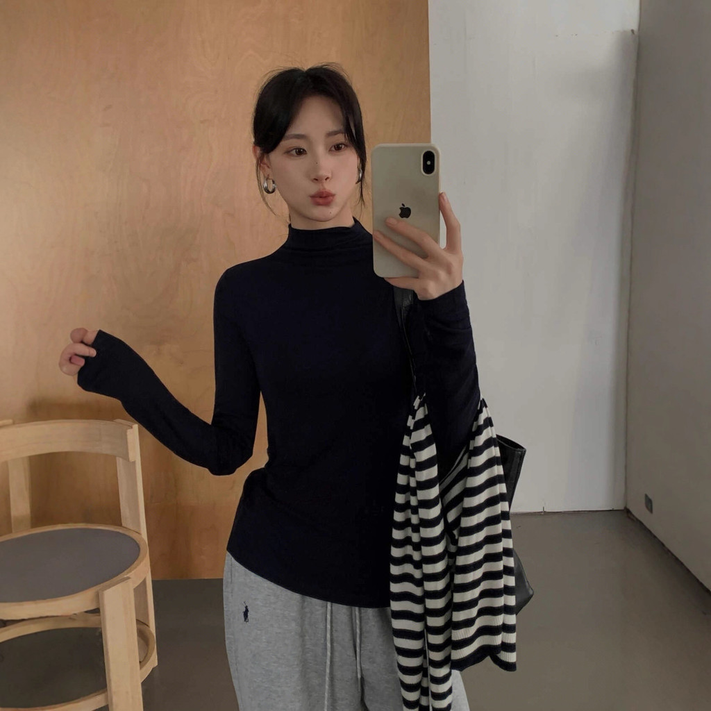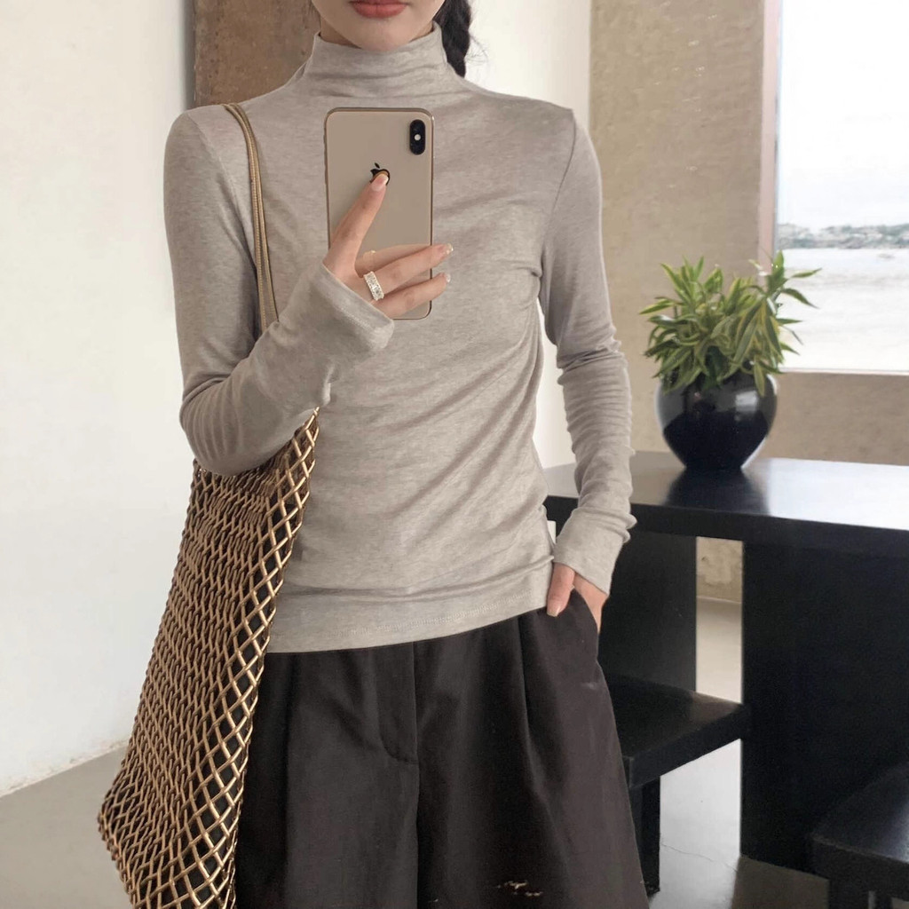 Soft Waxy Skin-Friendly Wool Bottoming Shirt All-Match Warm Mid-High Collar Long-Sleeved T-Shirt Lyocell Tencel In