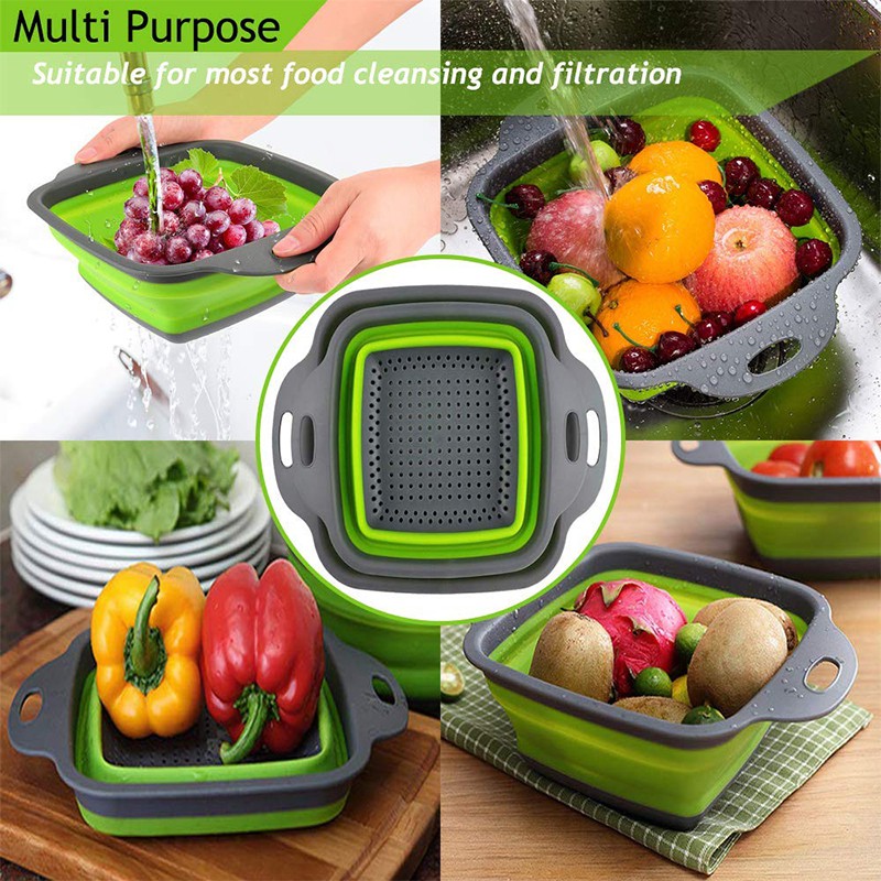 Luxhaus - SG Stock 2 Piece Collapsible Silicone Colander Folding Kitchen Strainer Round, Rectangle