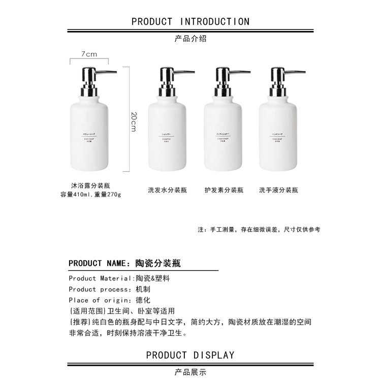 Luxury Ceramic Hand Soap Shampoo Body Lotion Cream Wash Sanitizer Bath Dispenser