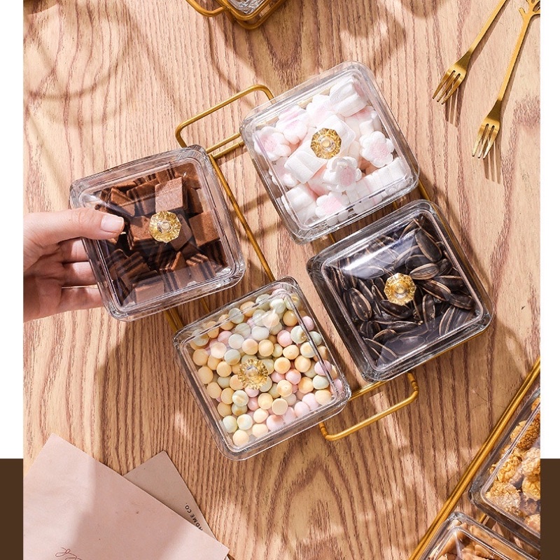 Luxury Fruit Platter Snack Servingware Serving Tray Snacks Fruits Acrylic with Lids Gold Finish Rack