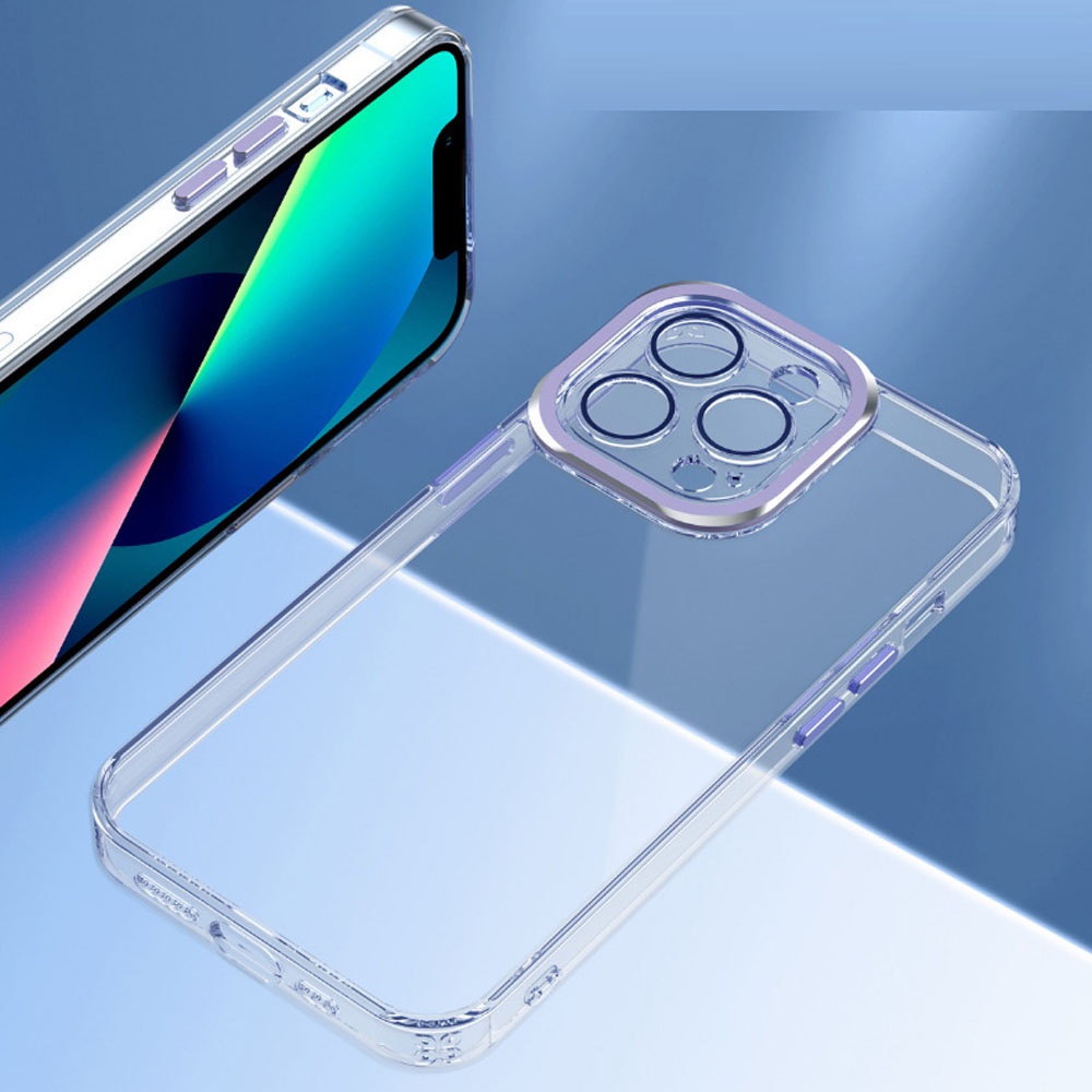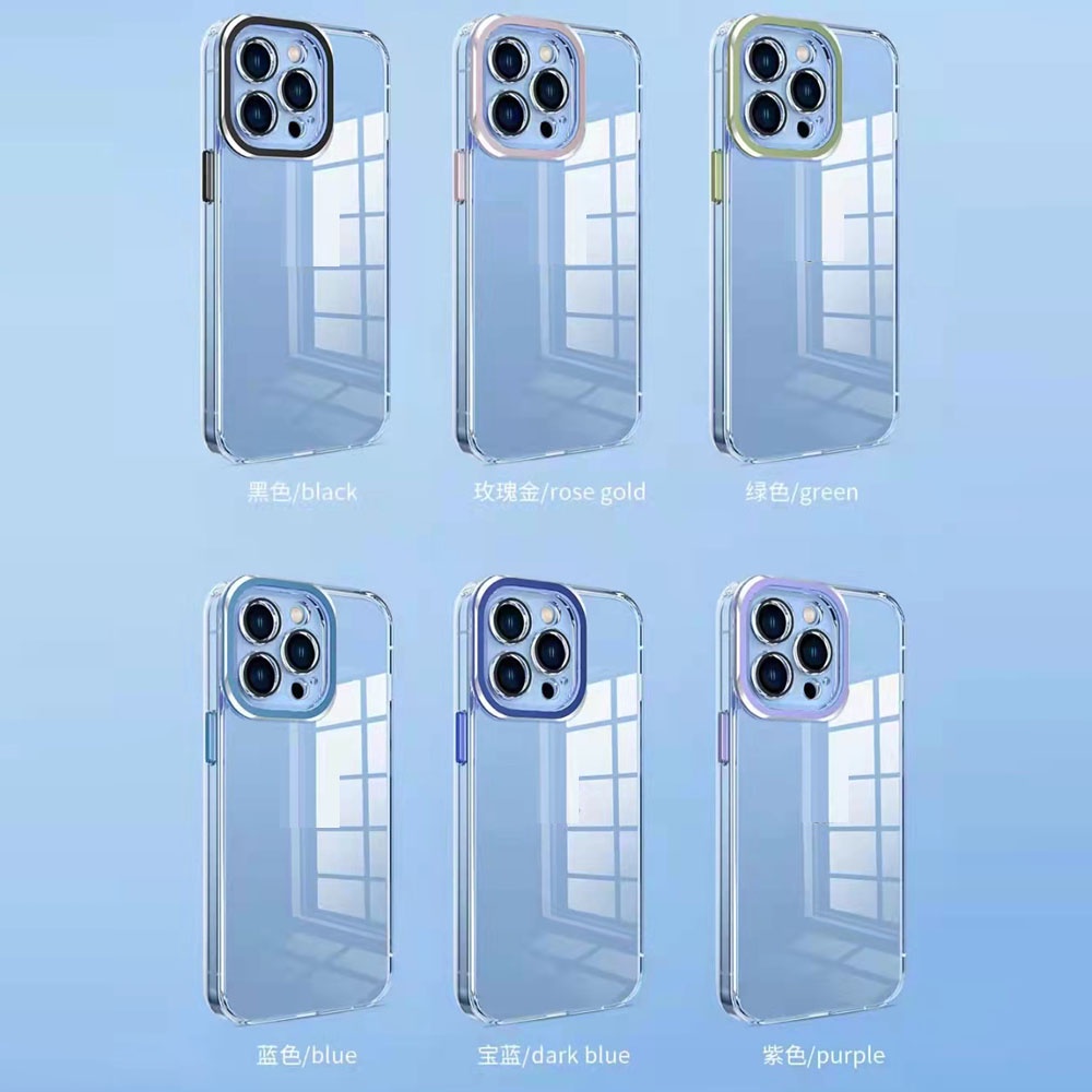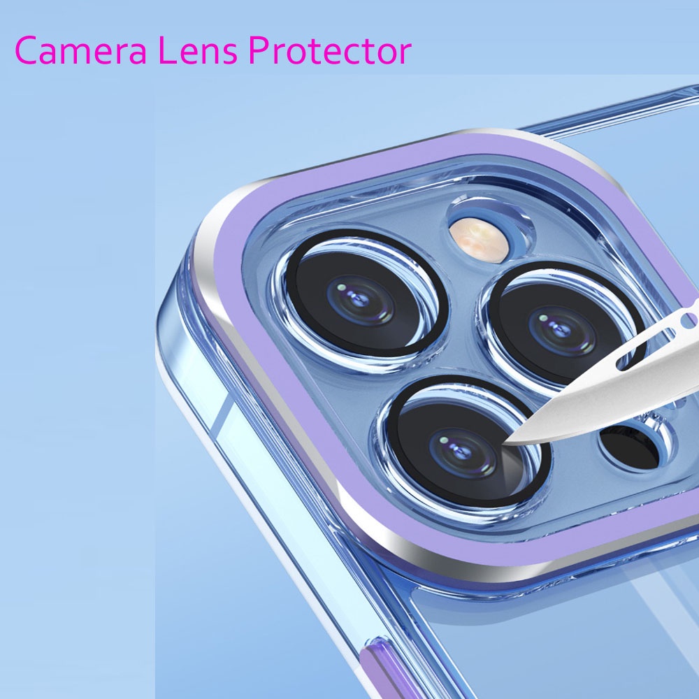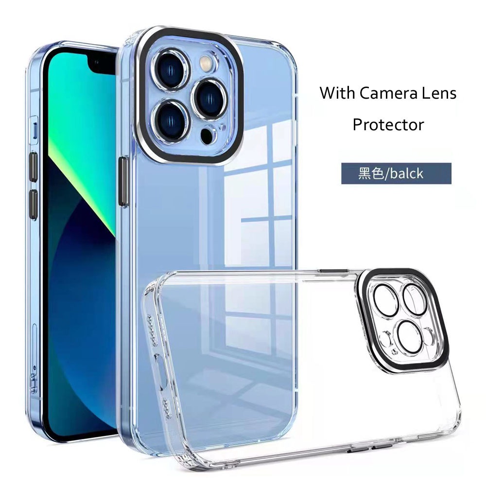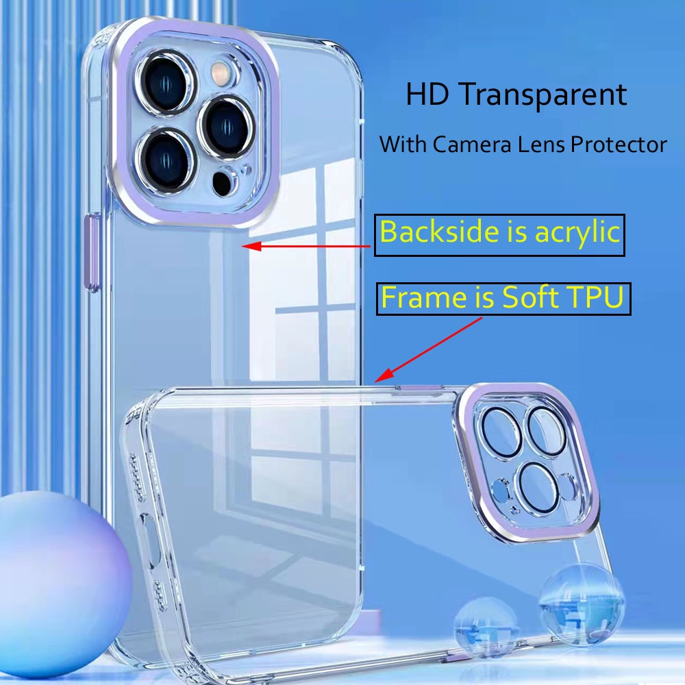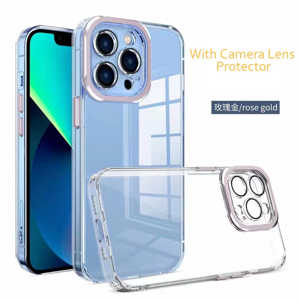 Luxury Lens Protector Transparent Acrylic Silicone Case For iPhone 13 12 11 Pro Max Plated Color Soft Shockproof Cover