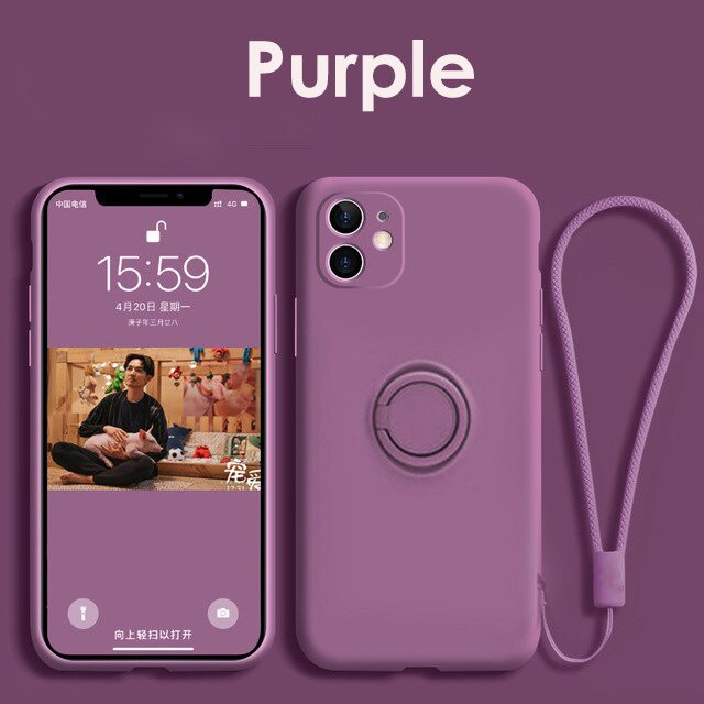 Luxury Magnetic Liquid Silicone Case For Samsung Galaxy A04e A14 A24 A34 A54 Ring Holder Free Lanyard Shockproof Soft Cover