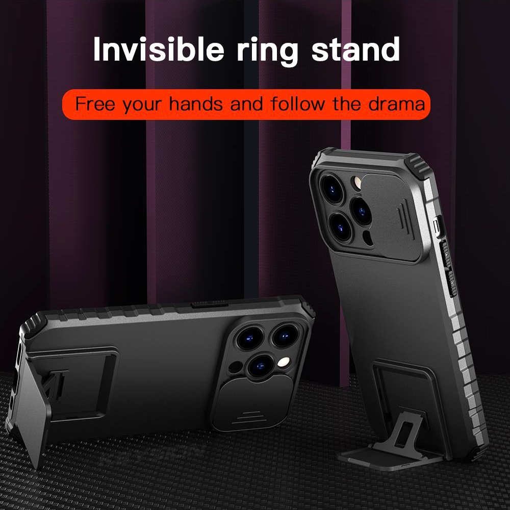 Luxury Shockproof Lens Protector Hard Armor Casing Case with Stand for IPhone 14 Pro Max 13 Pro Max 12 Pro Max 11 Pro Max