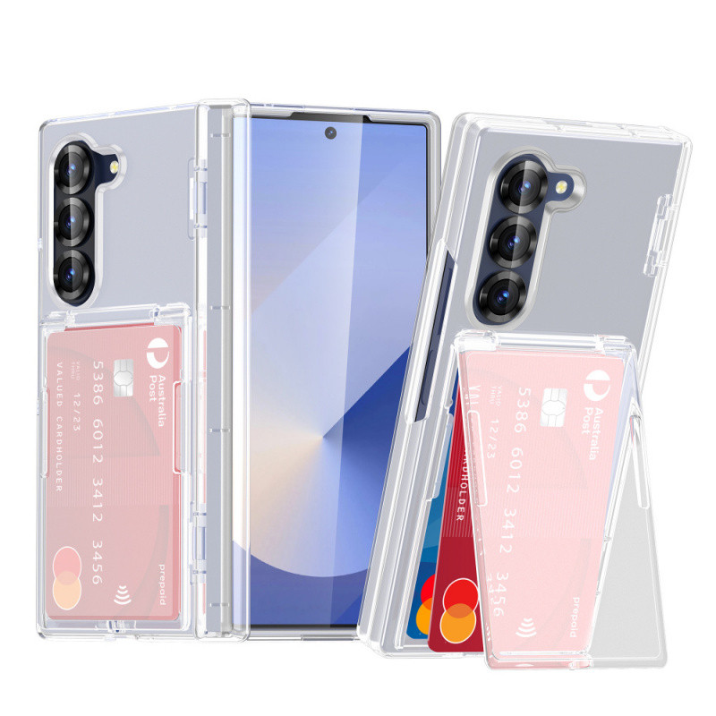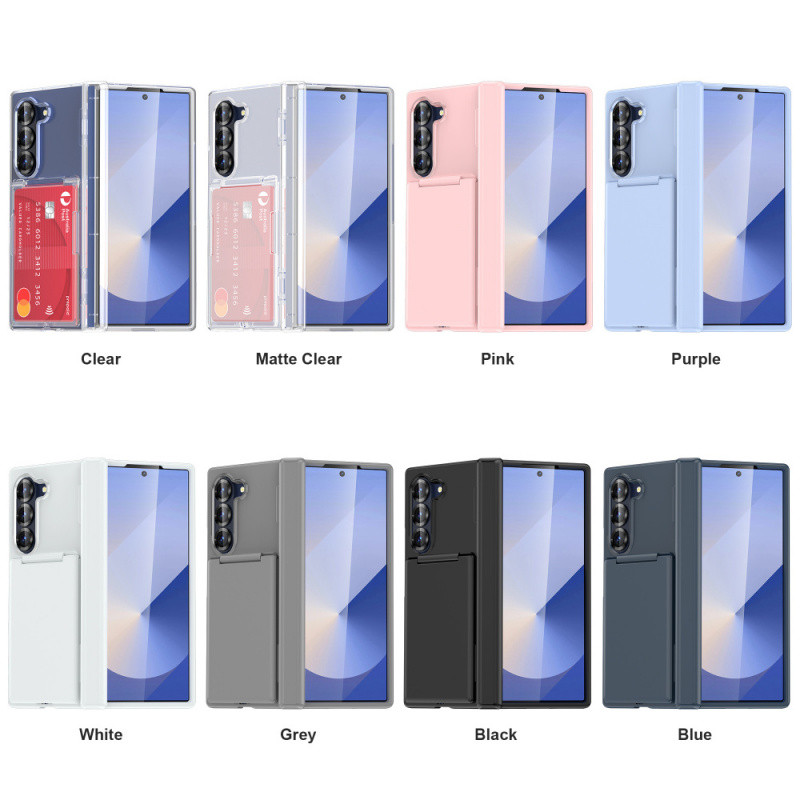 Luxury Wallet Card Holder Built-In Kickstand Full Hinge Protection Phone Case For Samsung Z Fold 7 6 Z Fold Matte Clear Shockproof Hard Protective Back Cover