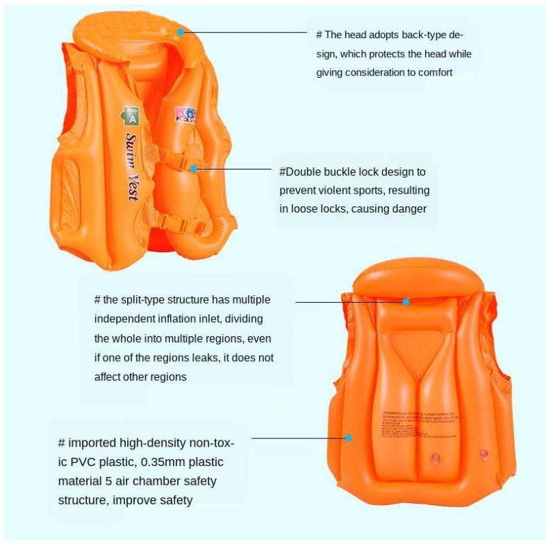 M'sia Children Inflatable Float Life Jacket Baby Swimming Safety Vests
