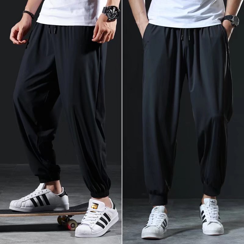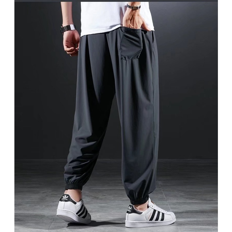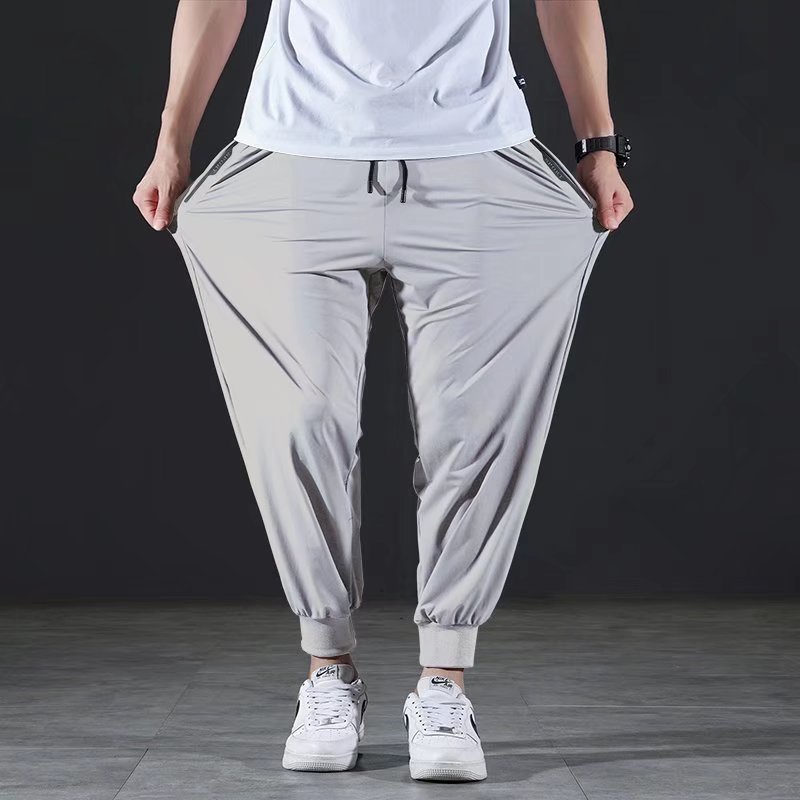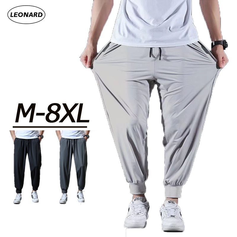 M-8XL Basic Pants Men Ice Silk Cool Long Pants Stretch Casual Loose Jogger Pants Plus Size Pants