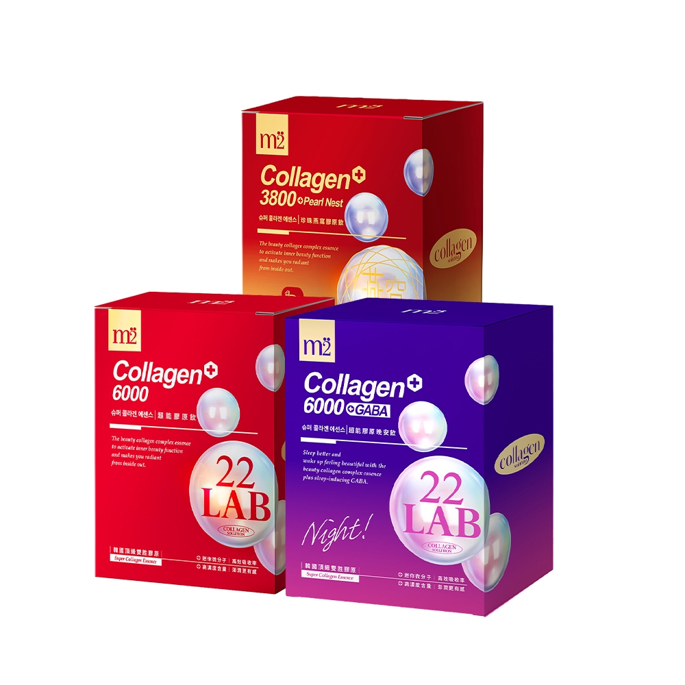 M2 22Lab Super Collagen 6000mg Drink 8s/ Drink+GABA 8s / 3800 +Pearl Nest 8s