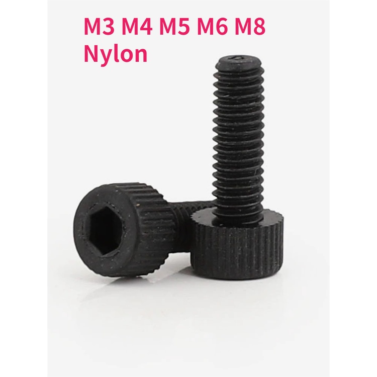 M3 M4 M5 M6 M8 Black Nylon Hexagon Hex Socket Screw Cup Head Cylindrical Head Knurled Plastic Bolt