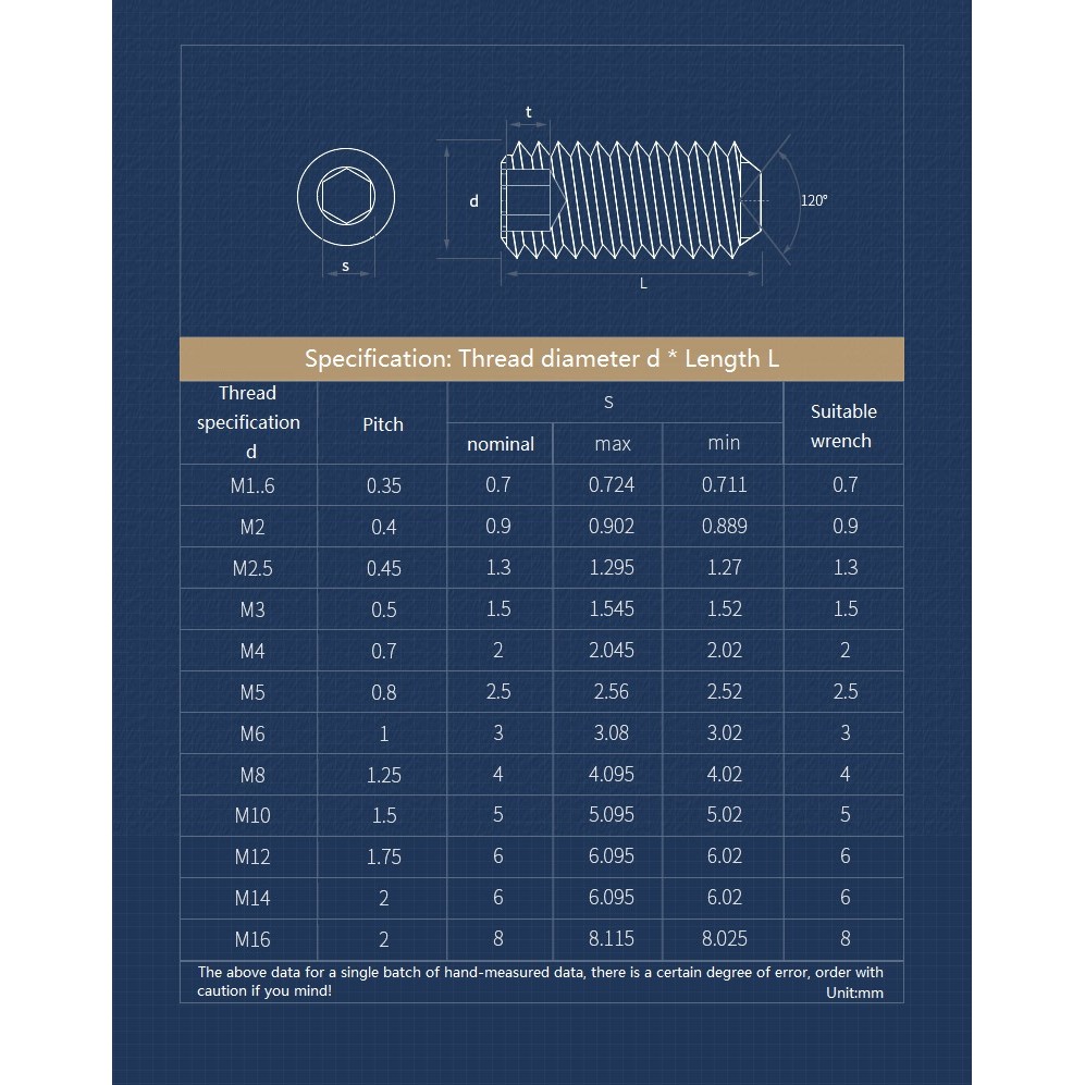 M3 M4 M5 M6 M8 M10 M12 316 Stainless Steel Hex Socket Cup Point Set Screw Headless Hexagon Socket Grub Screw DIN916